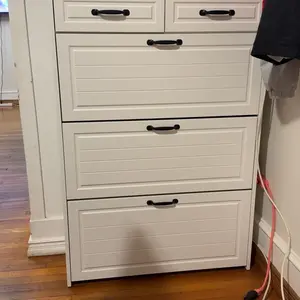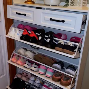 ·[Adjustable Shelves] This shoe storage has three flip drawers and 2 tiers inside each drawer. The interior shelves are adjustable and removable,you can choose whether to adjust or remove the shelf according to the size or height of your shoes.