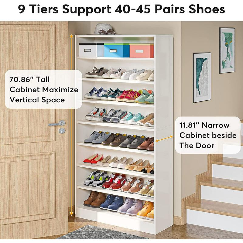 Tribesigns 9-Tier Shoe Cabinet, with its spacious design and open storage compartments, this 70.8 inches shoe cabinet can comfortably accommodate 40-45 pairs of shoes, making it the perfect addition to any shoe lover's collection.