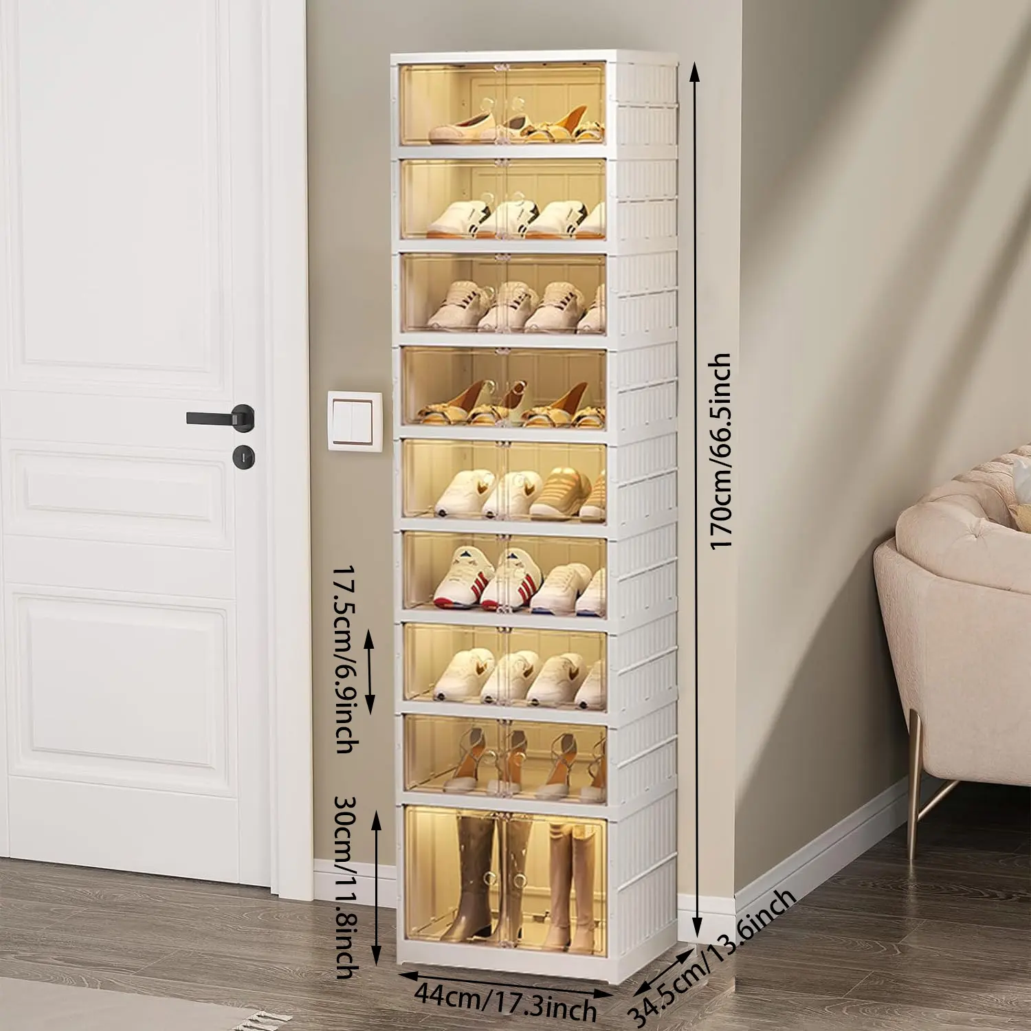 1/2Pcs 9/18 Tier foldable shoe cabinet,Can store 18 pairs of shoes,Plastic Collapsible Shoes Storage Box Clear Shoe Boxes Stackable with Door Shoe Cabinet Bins with Lids Large Organiser Racks shoe rack organizer men room accessories shoe cabinet storage
