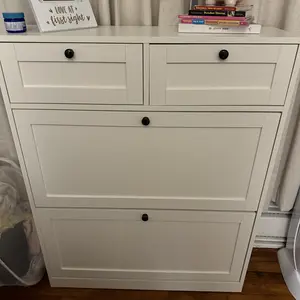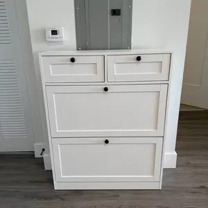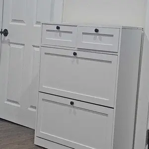 ·【SAFE AND RELIABLE QUALITY】The shoe cabinet is made of high-quality MDF and metal accessories, with a stable structure to ensure excellent load-bearing capacity. The black handle is simple and elegant, comfortable to touch, and easier to open the drawer.