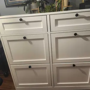 【SAFE AND RELIABLE QUALITY】The shoe cabinet is made of high-quality MDF and metal accessories, with a stable structure to ensure excellent load-bearing capacity. The black handle is simple and elegant, comfortable to touch, and easier to open the drawer.