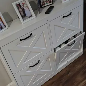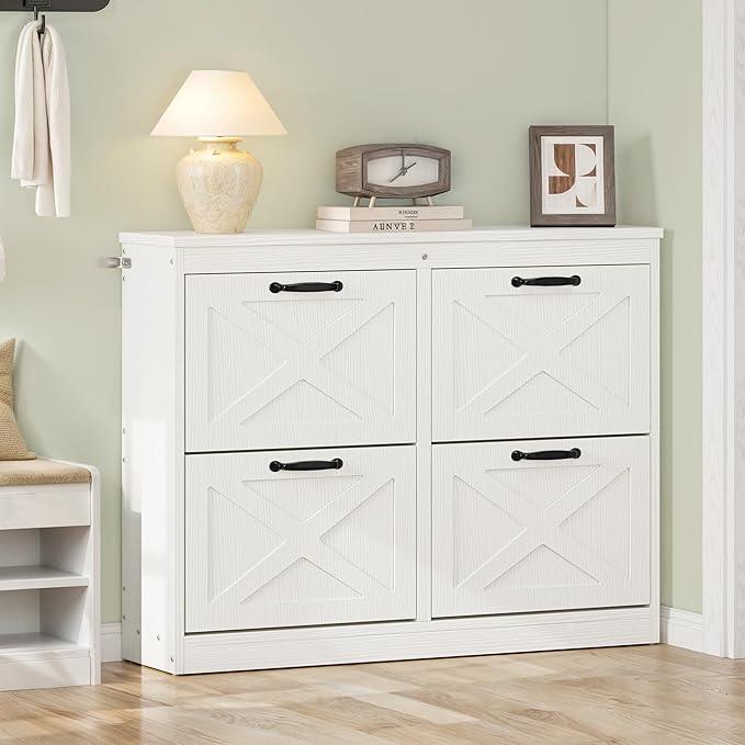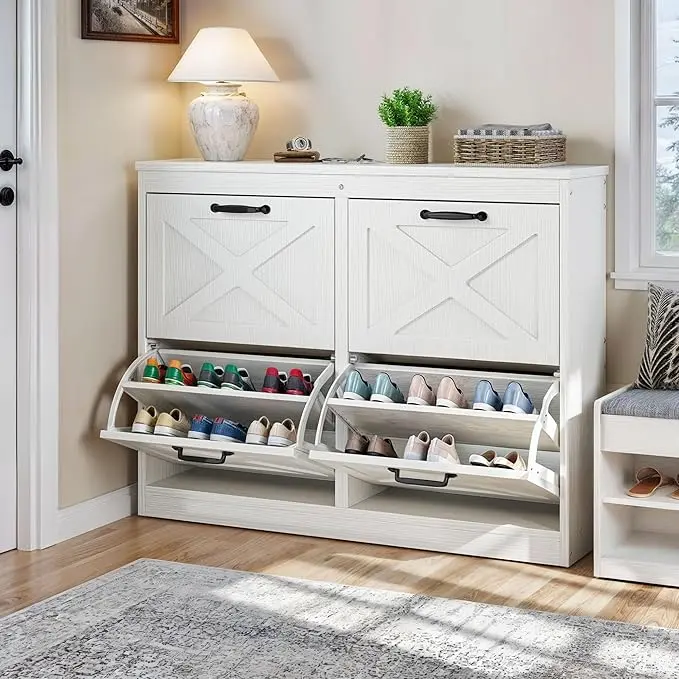 Compact shoe cabinet: Explore the elegance of our hidden shoe cabinet with 4 flip doors. Ideal for entryways, hallways, living rooms, or porches, its talented design ensures impeccable organization, creating a roomy path