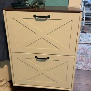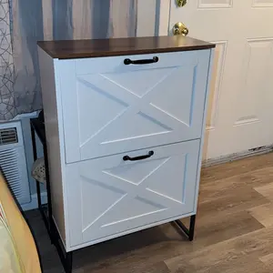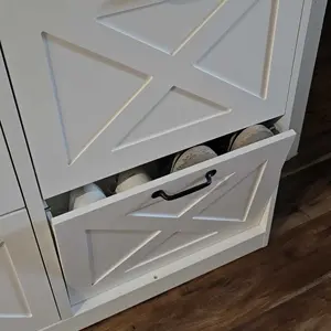 Ample shoe organizer: Four flip drawers with dual layers enable you to adjust or remove them to accommodate your prized shoe collection â boots or heels. The top surface serves as an elegant gallery for decor or a convenient spot for daily essentials