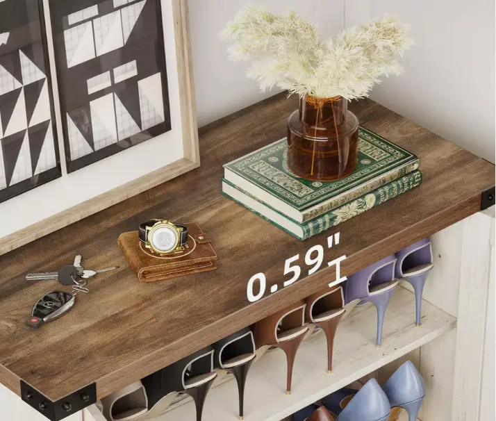 Elegantly refined: Featuring exquisite X pattern, this farmhouse entryway shoe storage cabinet adds a natural charm to your home. It effortlessly complements any furniture in entryways, living rooms, hallways, and small apartments.