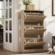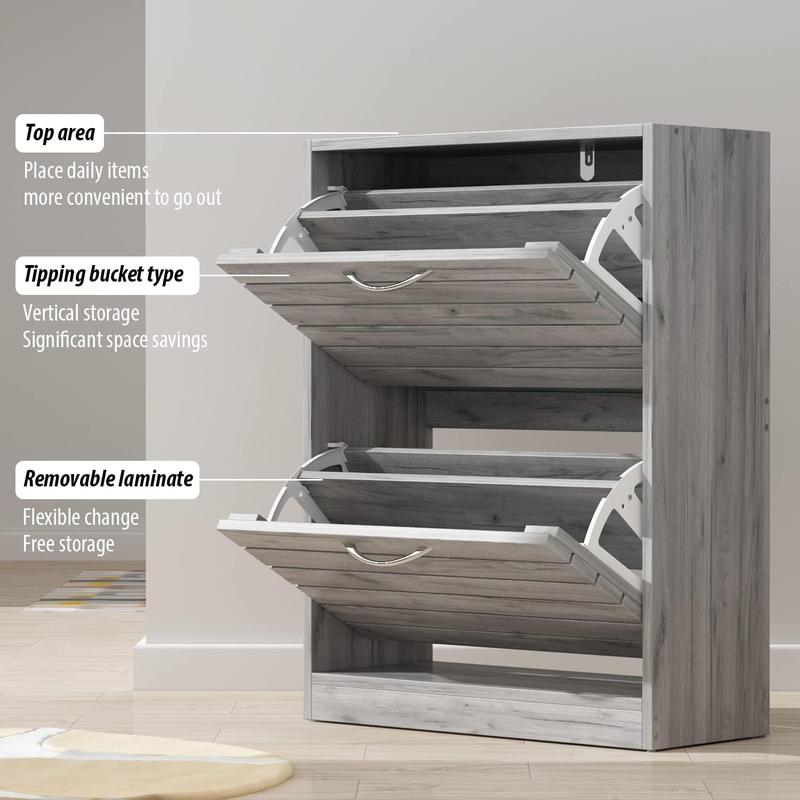 ·【STURDY STRUCTURE】- The shoe storage cabinet adopts waterproof and durable MDF, which is easy to wipe. The shoe cabinet with 2 flip drawers. You can also place your wallet & keys on the top