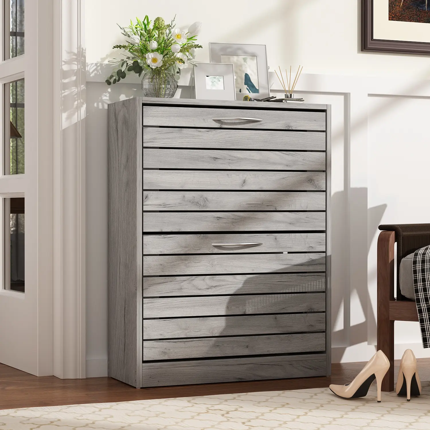 Características: Súper para mantener el área ordenada sin montañas y montañas de zapatos aparte le caben suficientes de todos los tamaños la verdad a mí me encantó yo si lo recomiendo ampliamente luce súper bonito y elegante la entrada de tu casa luce muy bella todo en orden