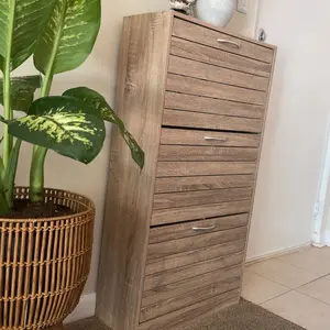 ·【SUFFICIENT STORAGE SPACE】: Overall sizes: 22.4”W x 9.4”D x 29.5”H. This multifunctional shoe rack with 2 flip drawers, 2 tiers in each drawer(The middle board can be removed). From then on, bid farewell to the messy shoes in life