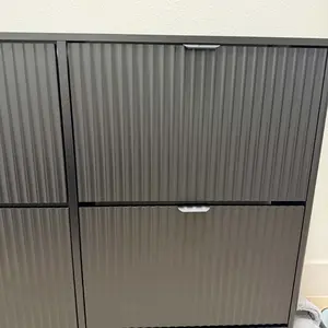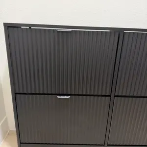 ·【GENEROUS STORAGE CAPACITY】Measuring 9.4"D x 47.2"W x 33"H, slim shoe storage maximizes shoe capacity while saving spaceperfect for tight spaces, apt and dorm. Made of engineered wood, hidden shoe cabinet with 2 dlip drawers can hold about 20-24 pairs of shoes. Ventilated back design not only prevent odor buildup but more suitable for wall fixing.