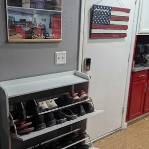 ·Flip Drawers Shoe Cabinet: The modern freestanding shoe cabinet adopts the design of space-saving flip drawers, which is easy to open and close. Compared with ordinary shoe racks, this narrow shoe cabinet can be placed in a narrow space, keeping your shoes away from dust and preventing pets and bugs from biting your shoes
