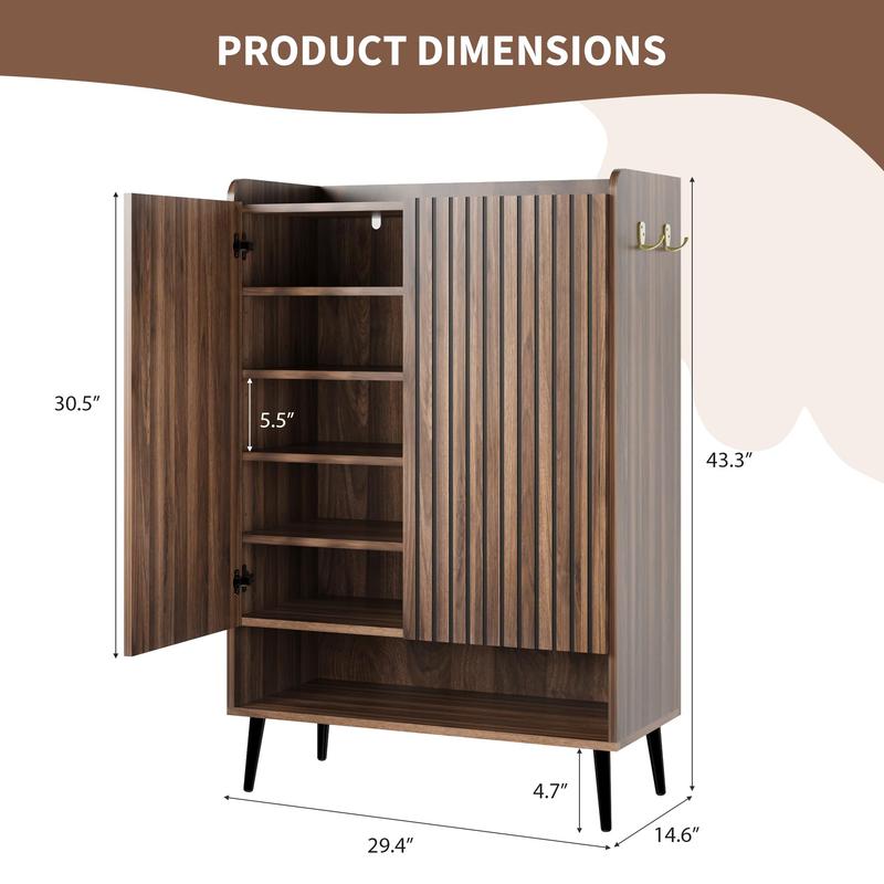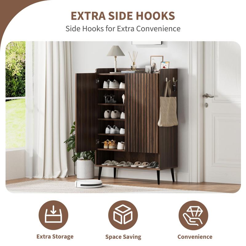 ·Built-In Hooks for Keys & Bags:Two metal side hooks are included to conveniently hang keys, umbrellas, or bags, making this a multifunctional entryway shoe storage cabinet with hooks that helps keep your essentials organized and within reach