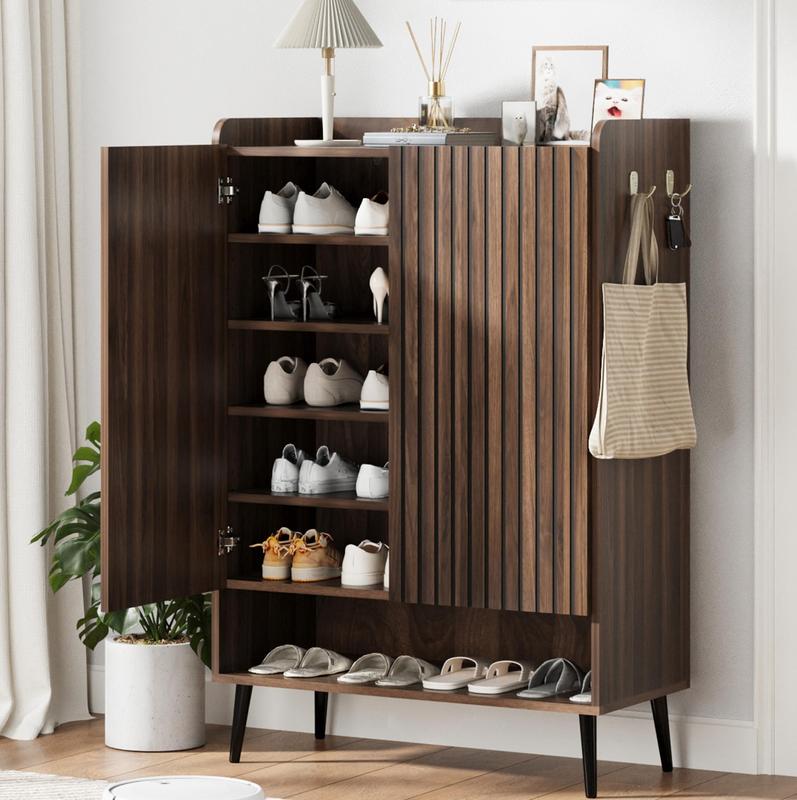 ·6-Tier Shoe Cabinet with Boot Storage: This spacious shoe cabinet holds 30+ pairs with 5 interior shelves, an open bottom tier, and a tall side compartment for boots. Perfect for entryways, closets, or hallways