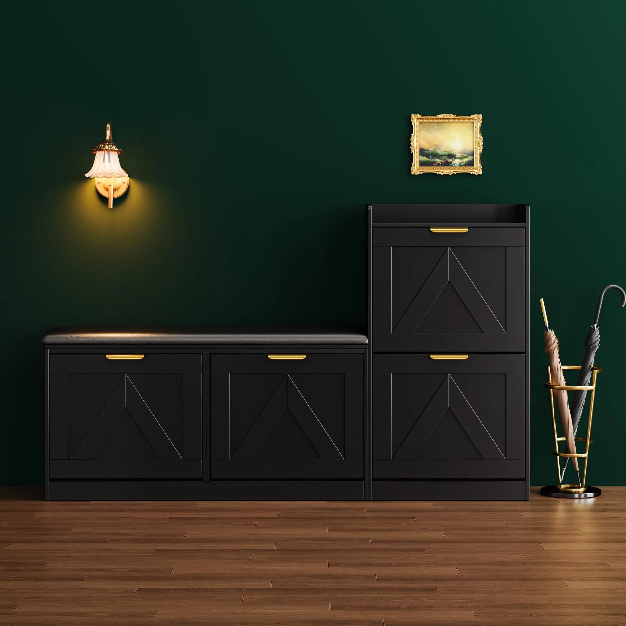 ·4.Modern Farmhouse Style with V-Shaped Design: The stylish V-shaped front design and classic wood finish bring a modern farmhouse charm to your space, making this large capacity shoe storage cabinet a beautiful addition to any entryway, hallway, or living room