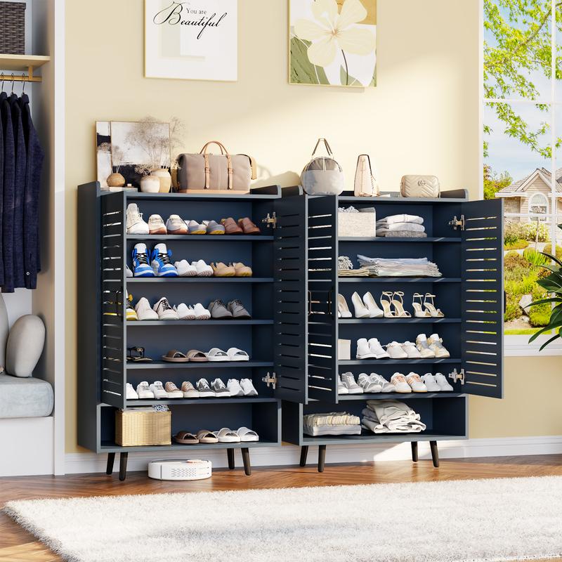 【Breathable Louvered Design】 The louvered doors allow airflow to keep shoes dry and fresh, while offering versatile storage for everything from slippers to knee-high boots.