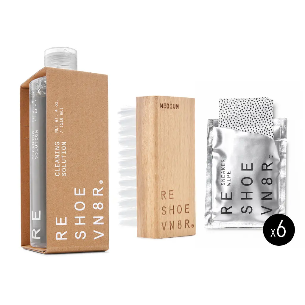 RESHOEVN8R ORIGINAL SHOE CLEANING KIT - 4OZ CLEANER SOLUTION, ALL PURPOSE MEDIUM BRUSH, 6 SNEAKER WIPES