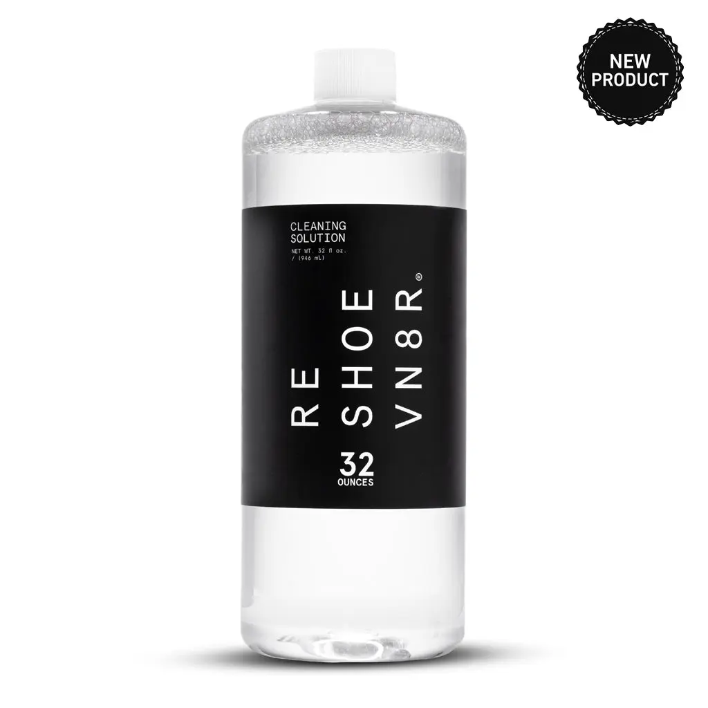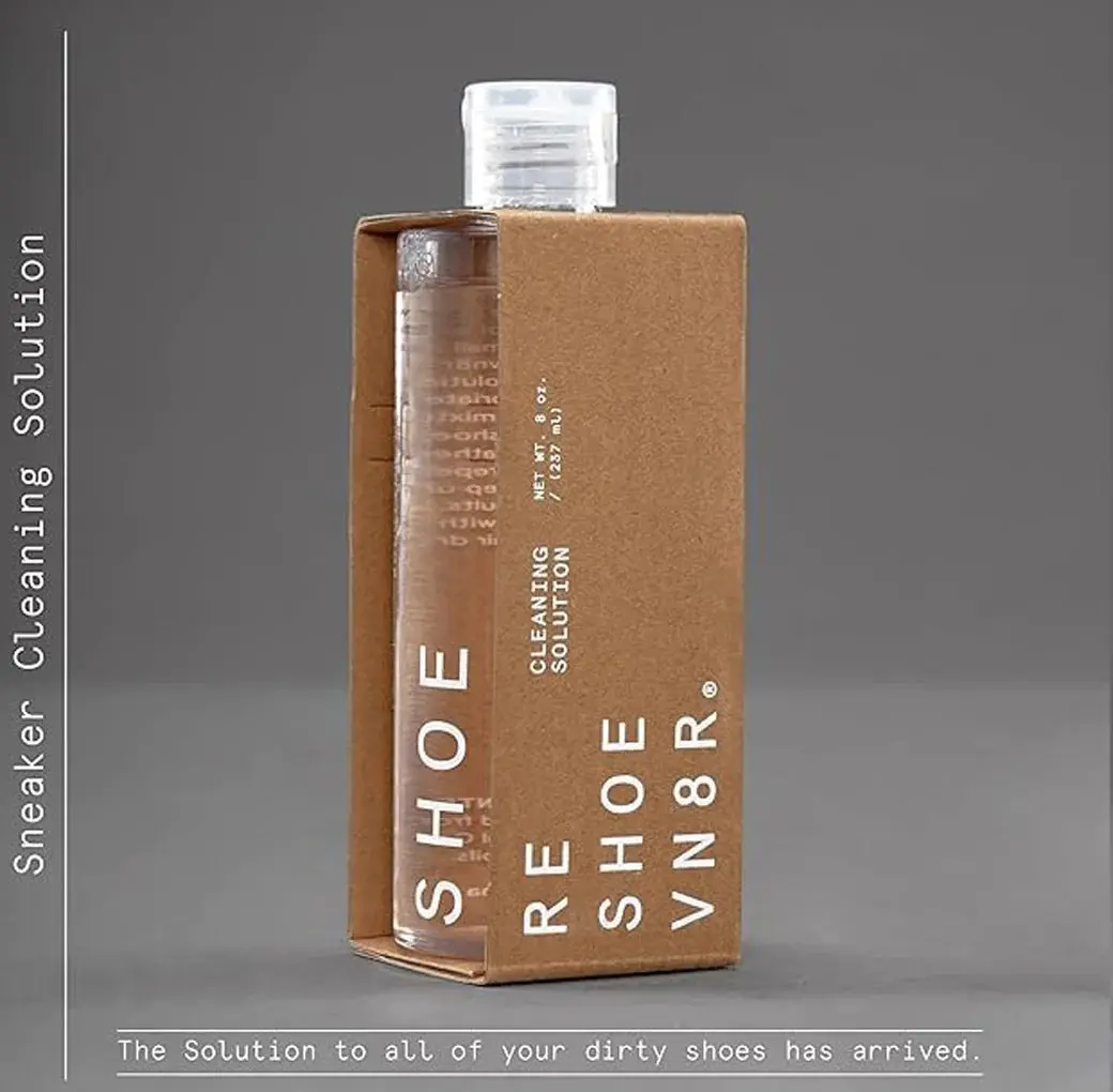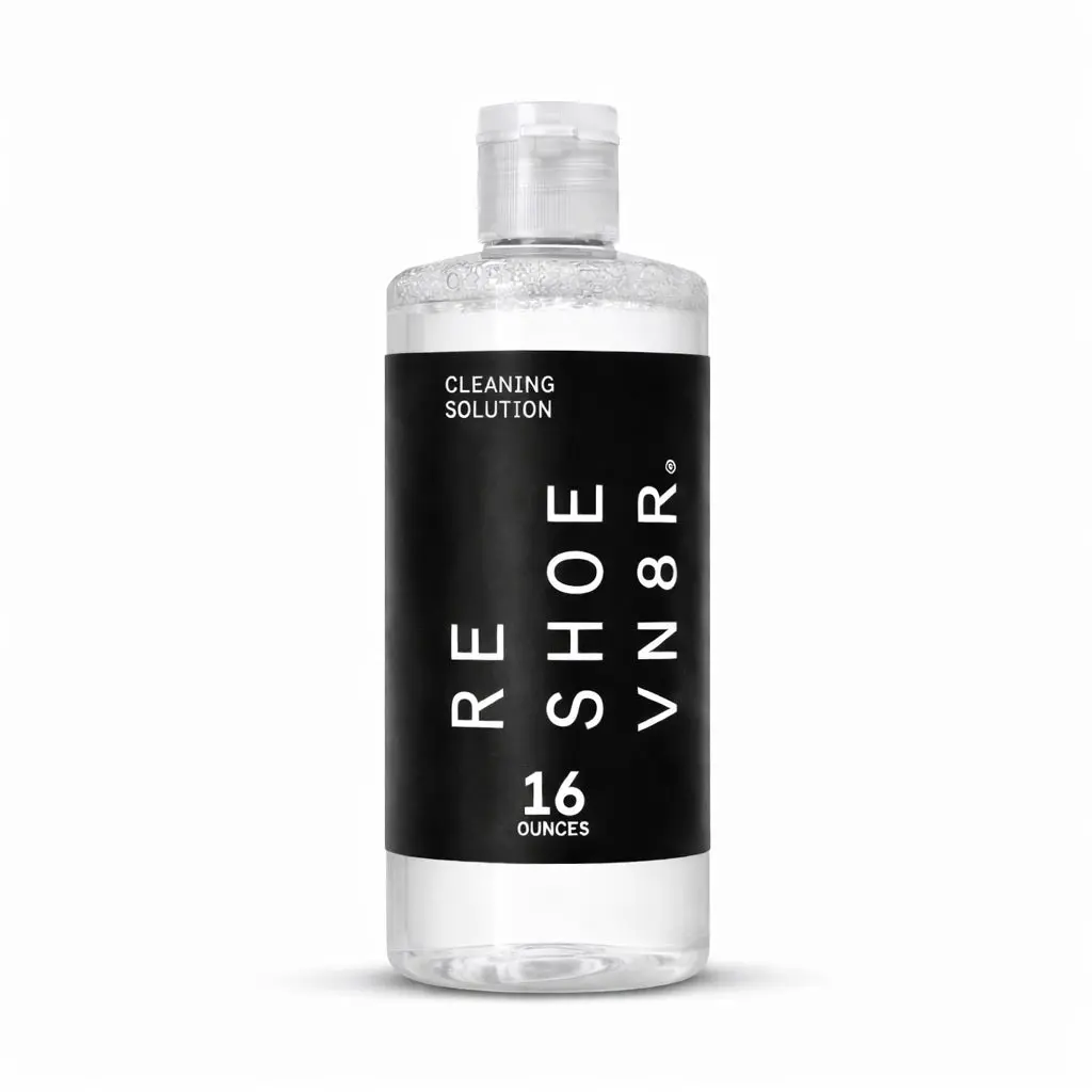 The RESHOEVN8R Sneaker Cleaning Solution is a highly concentrated, all-purpose shoe cleaner that is safe to use on almost any material. Made with 100% natural ingredients, this Solution works to condition your shoes as you clean. Just two squirts of Solution is enough to provide a top-to-bottom deep clean of your shoes.