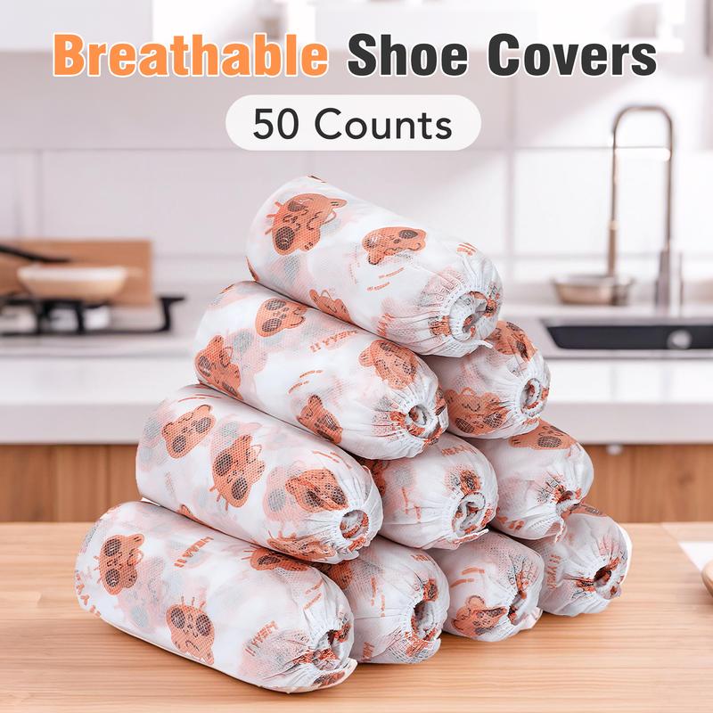 50 Counts Shoe Covers Disposable, Small Cute Durable Non Slip Boot Covers, Bowling Shoe Covers for Kid Child, Elastic Cuffs for a Secure Fit