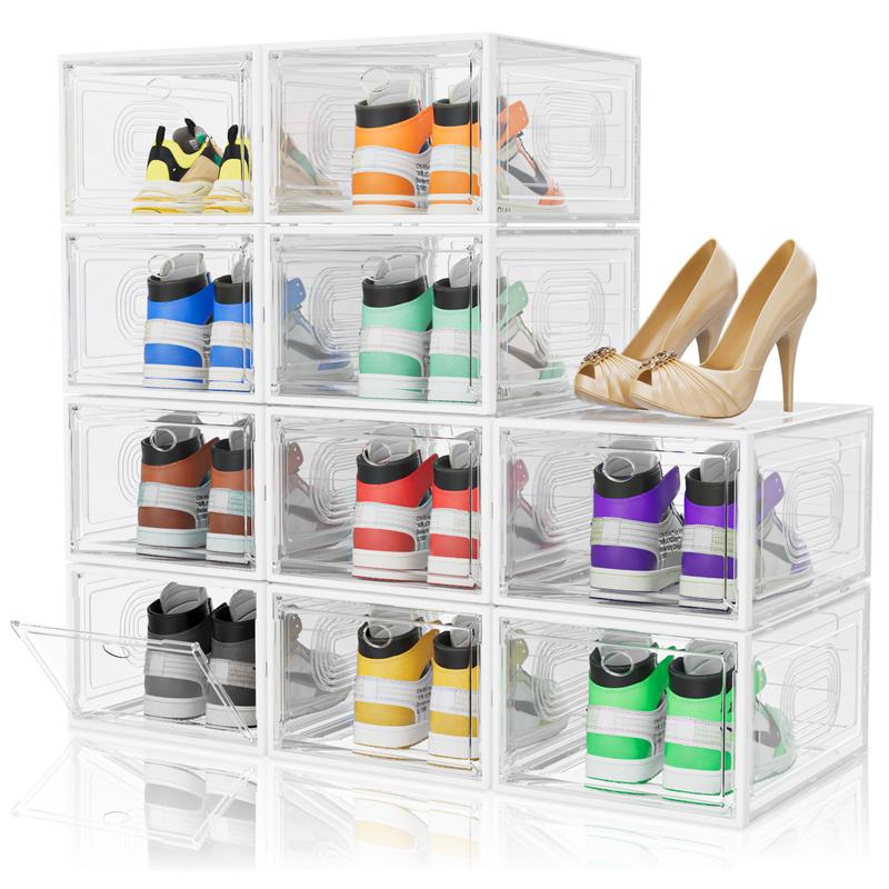 These are awesome! For anyone wondering these fit size 13 shoes well! Size 13 is the max if you wear a 14 and up these will not work for you! This is an excellent product with great quality and a great look, the boxes are extremely sturdy and the doors work well. Assembly is very simple and easy.