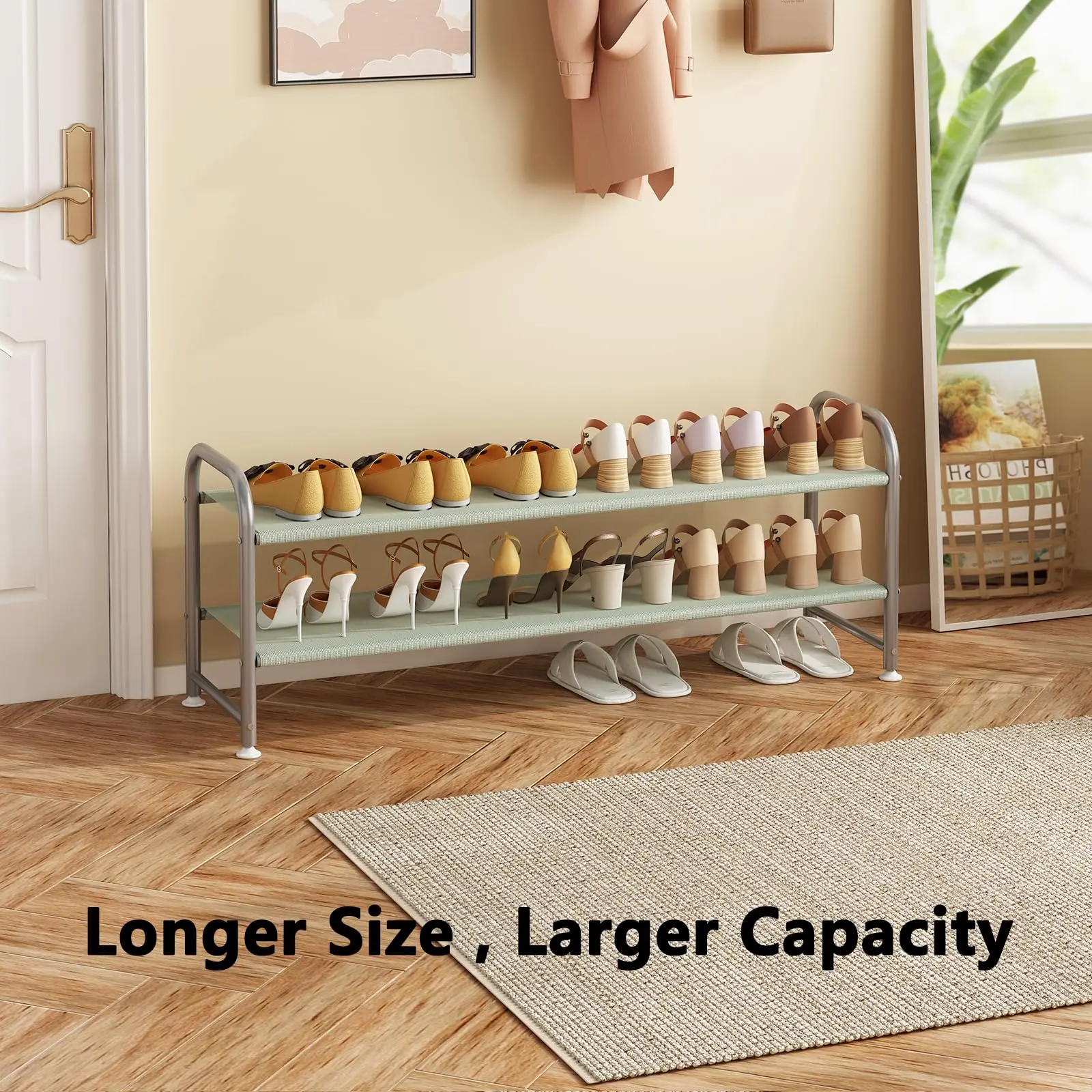 ·ăWider and Larger Shoe Rackă: The 3 tier shoe shelf can store up to 18 pairs of shoes, the extra bottom layer can store slippersïŒkeeping shoes at a glance. overs the whole family's various shoe storage needs, store high boots, sneakers, sandals, suitable for men and women.