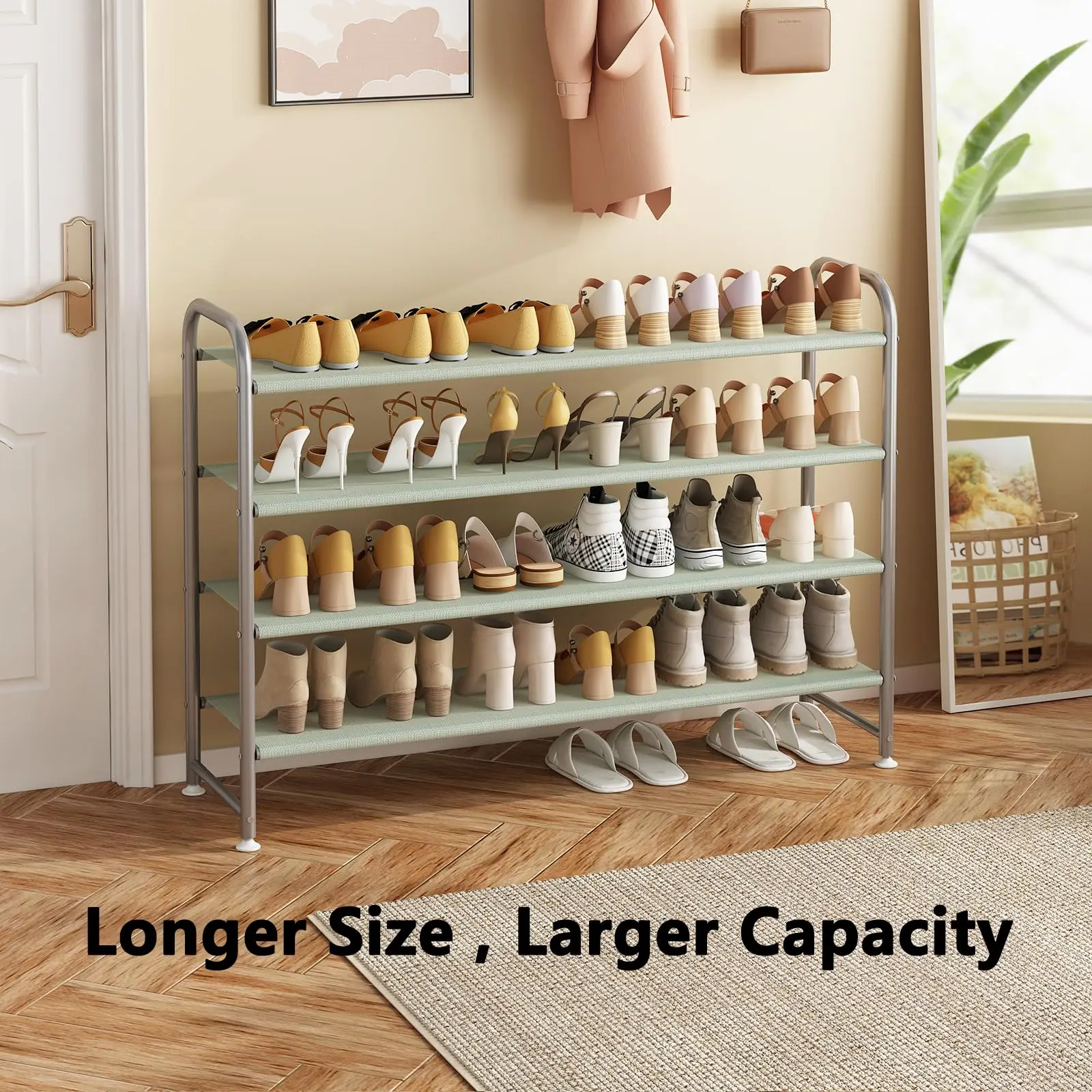 ·ăHigh Quality Shoe Standă:The large size shoe rack is 42.71"L x11.41"W x24.4"H inch made of thickened metal tube with power coated finish which is smooth and with strong corrosion resistance, equipped with four foot pads, which not only prevents vibration and shoe from falling, but also protects the floor from scratches.