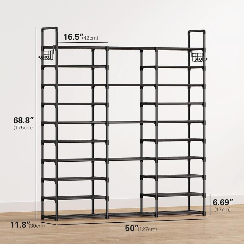 Our 10 tier tall shoe rack is designed to meet the needs of shoe collectors and households seeking generous storage in small space like departments. It provides ample, durable storage with added safety for your footwear.