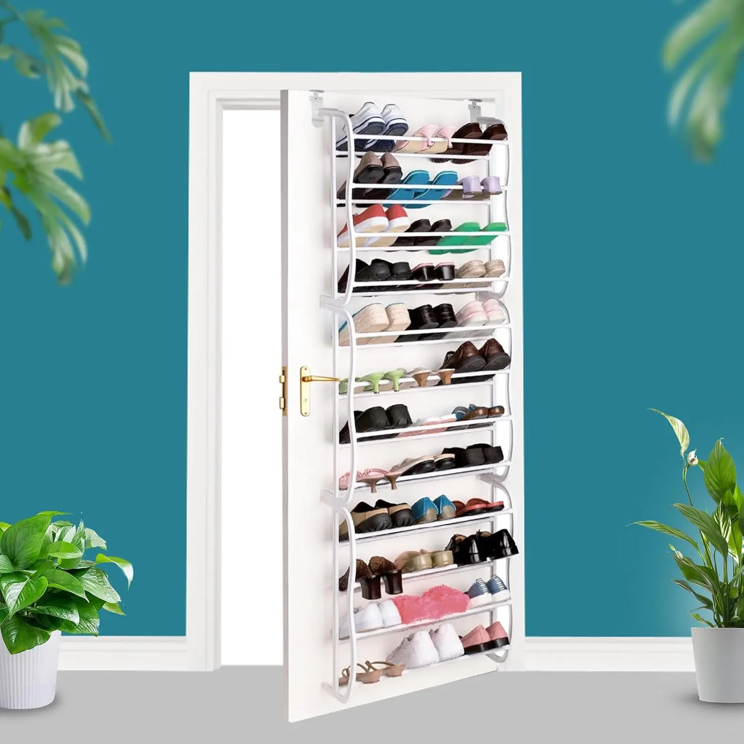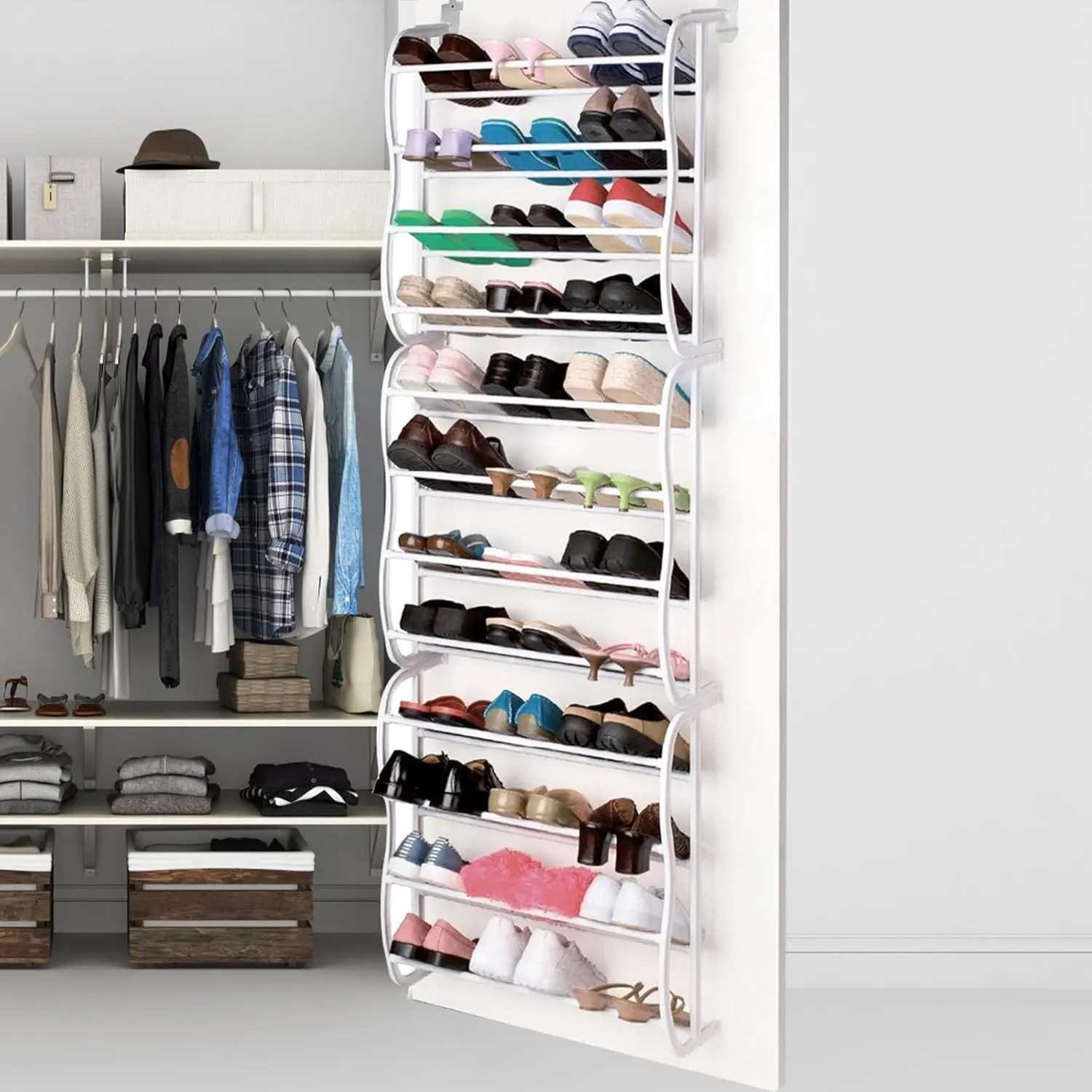 Not very sturdy doesn’t stay up against the door. Shoes fell all out.