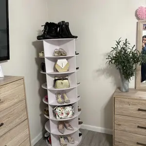 Keep your shoes organized and easily accessible with this 360° rotating 6/7-tiers shoe rack. Designed to fit 24-28 pairs of shoes, this organizer is perfect for entryway living rooms, hallways, and entryways.