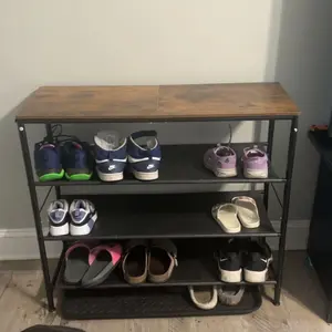 I like it! I was looking for a rack with a table top. It holds a decent amount of shoes (approx: 20 total, size 7) very functional and easy to put together.