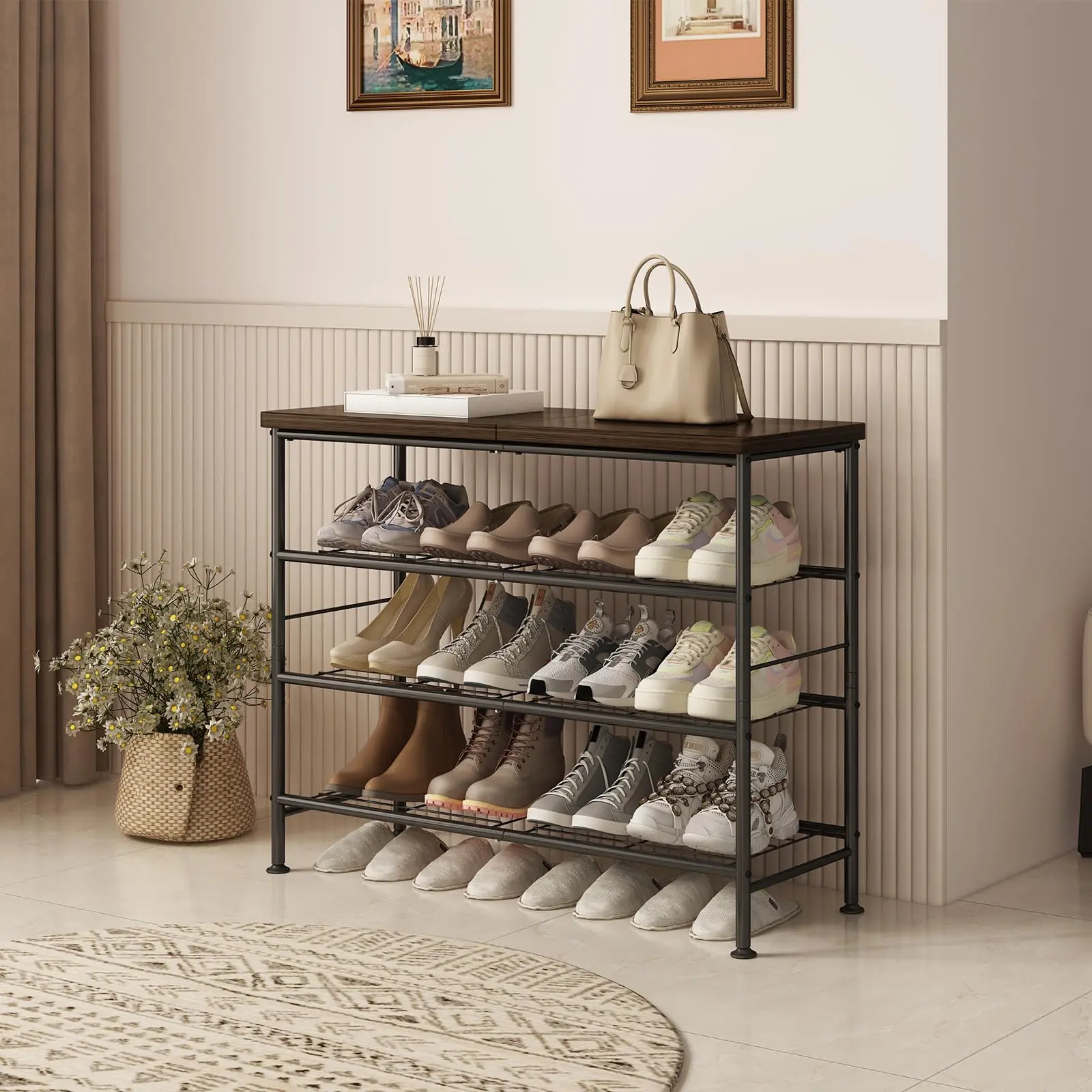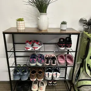 I purchased the 4 tier shelf for my laundry room. It helped organize my room and I couldn't be more pleased with my purchase. It's stylish and makes the room feel so much less cluttered. My husband wears size 13 and his shoes fit perfectly on the shelves.