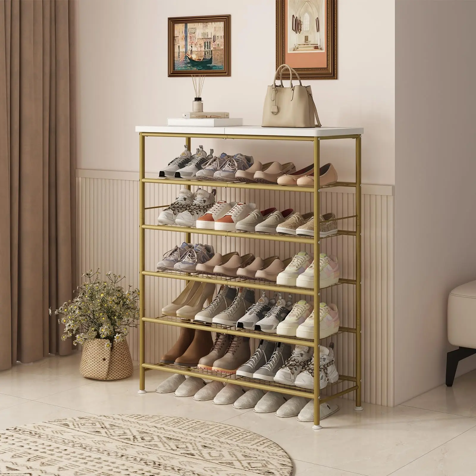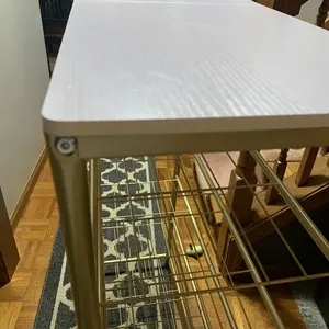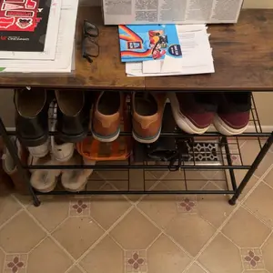 I like this shoe rack over all, but if I could change a few things, it would be:top shelf should be one piece & screws should match the body. In my picture, you can see the seam in the middle of the top shelf & the screws are silver color against the gold. For the price I paid, I wish it was better
