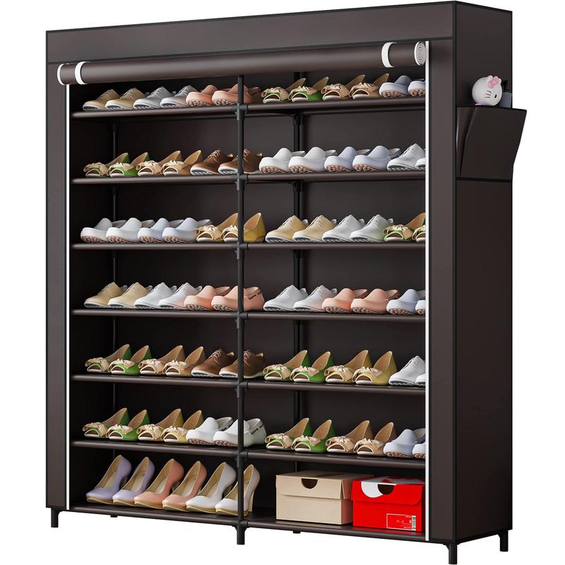 The shoe rack stores up to 42 pairs of adult shoes, with a design fitting knee boots, high heels, or slippers. It keeps your entryway, closet, or cabinets tidy. Dimensions: 47.24 x 11.81 x 49.21 inches. This organizer helps you find shoes easily, ensuring a clutter-free space.
