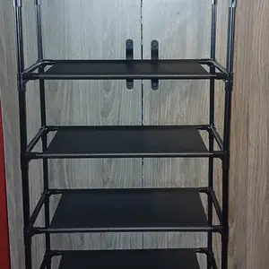 It's super easy to put together. Fits 2 pairs of shoes per rack. Holds 20 pairs. Canvas like material for the shoes to sit on. Metal frame. Very modern and sleek looking. Perfect for someone with less then ideal space it's tall and thin. Would work for other things then shoes as well.