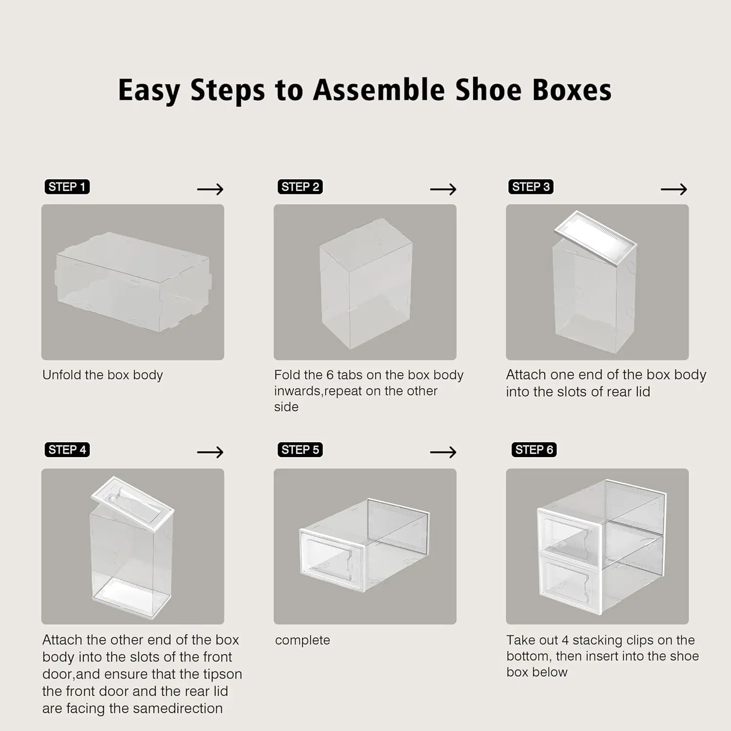Say goodbye to a cluttered closet with this 12 Pack Clear Plastic Shoe Storage Boxes. These stackable shoe organizers are perfect for keeping your shoes dust-free and maximizing storage space in your closet.