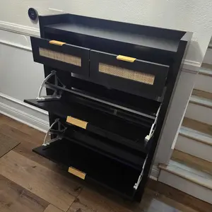 ·Additional Storage Space-The 2 additional drawers offer convenient storage for smaller items like keys, wallets, socks, or other personal essentials and the open top with a protective fence is ideal for displaying plants or holding everyday items, keeping them secure and easily accessible. These thoughtful storage spaces ensure that your essentials are within reach, without taking up valuable room. By separating shoes and smaller items, you can create a clean, tidy, and functional space, making this hidden shoe storage a practical and stylish addition to any home.