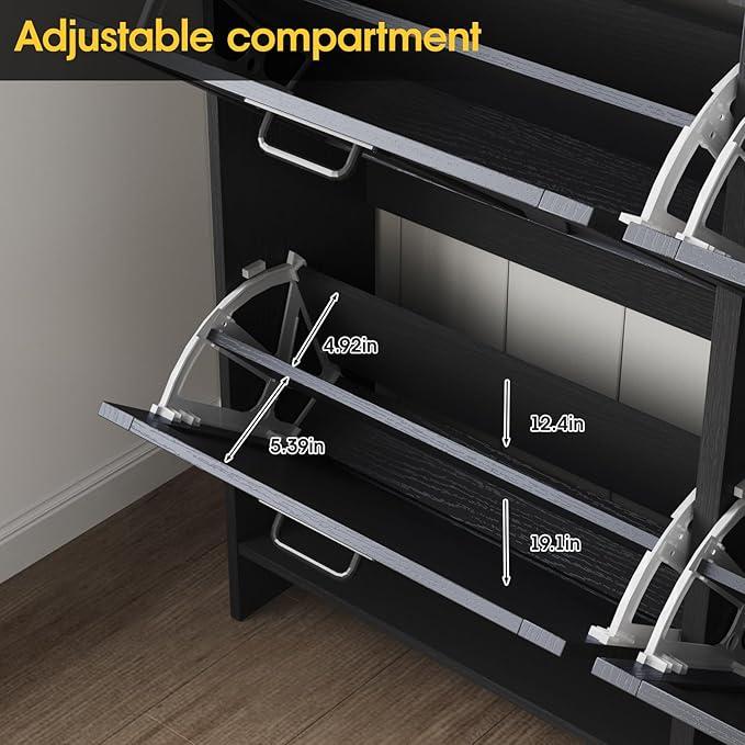·4 Flip Drawers&2 Drawers Shoe Cabinet:This shoe cabinet has 6 Drawers in total,2 of the drawers are for daily items.For 2 flip drawers and 2 tiers inside for each drawer, It features a removable divider in each compartment,you can choose to keep or remove the panel according to the size or style of your shoes.