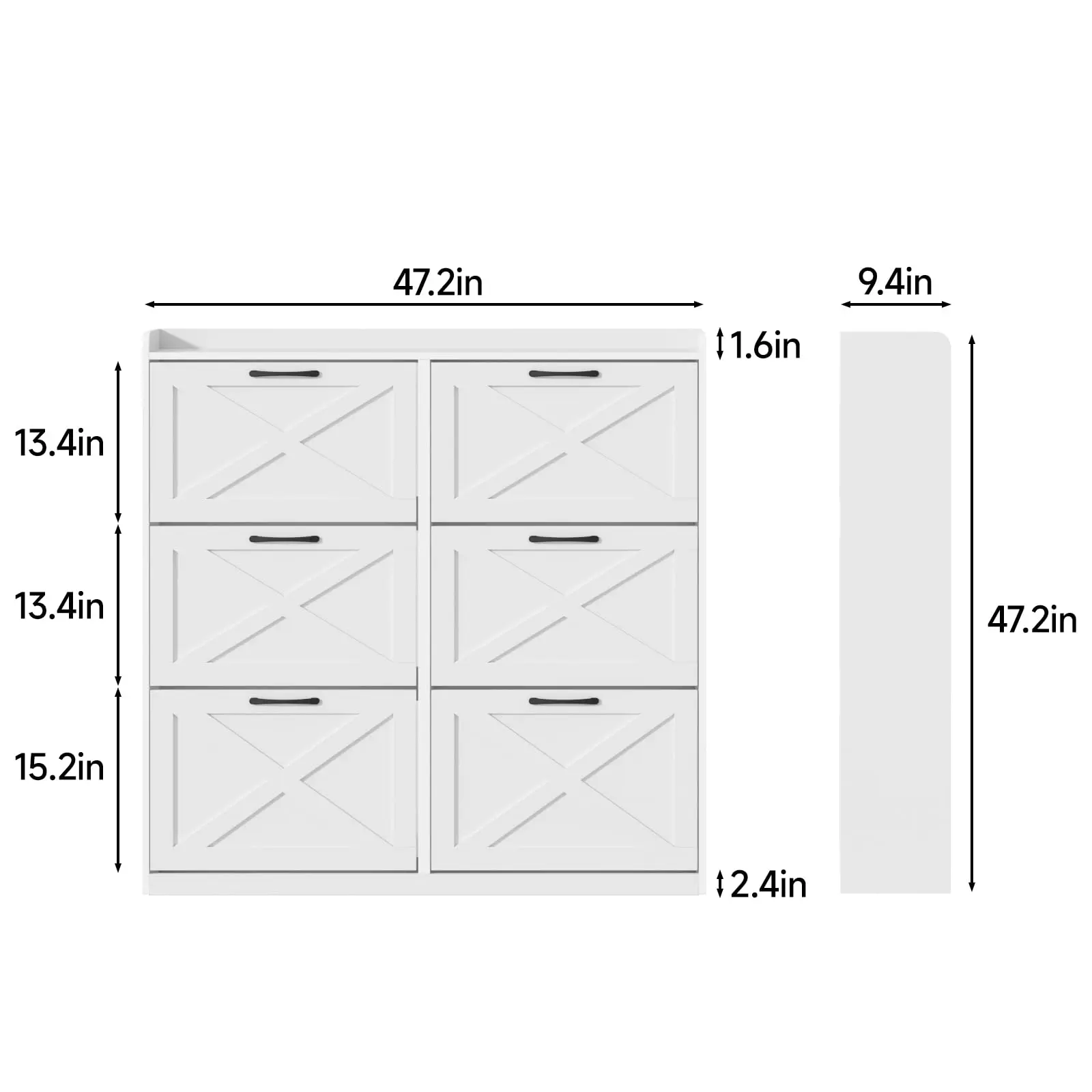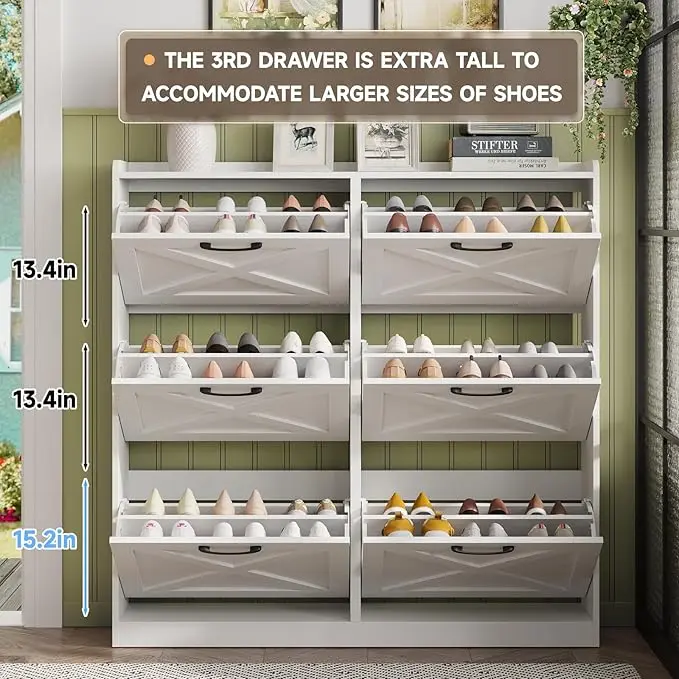 (with 6 Flip Drawers, the 3rd drawer is extra tall to accommodate larger sizes of shoes!)
