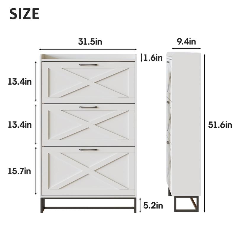 (with 3 Flip Drawers, the 3rd drawer is extra tall to accommodate larger sizes of shoes!)