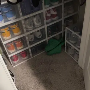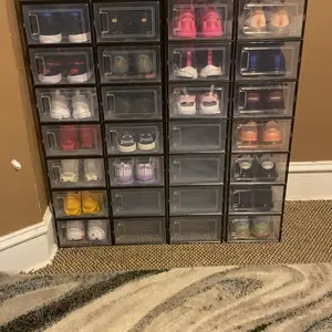 Nice collection…. I got rid of all the boxes that were ripped apart.I can see which shoes I want to wear and not keep throwing box tops around.