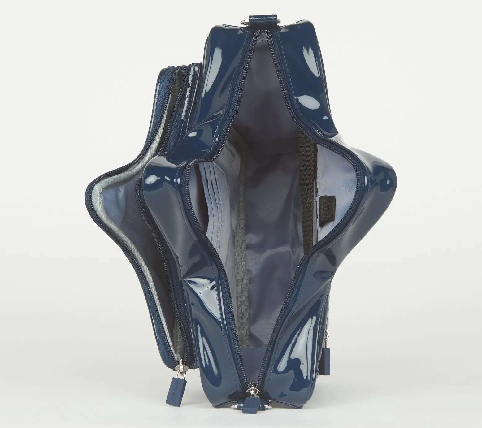 ·Star silhouette, water-repellent exterior, zip-top closure, adjustable removable crossbody strap, front zip pocket
