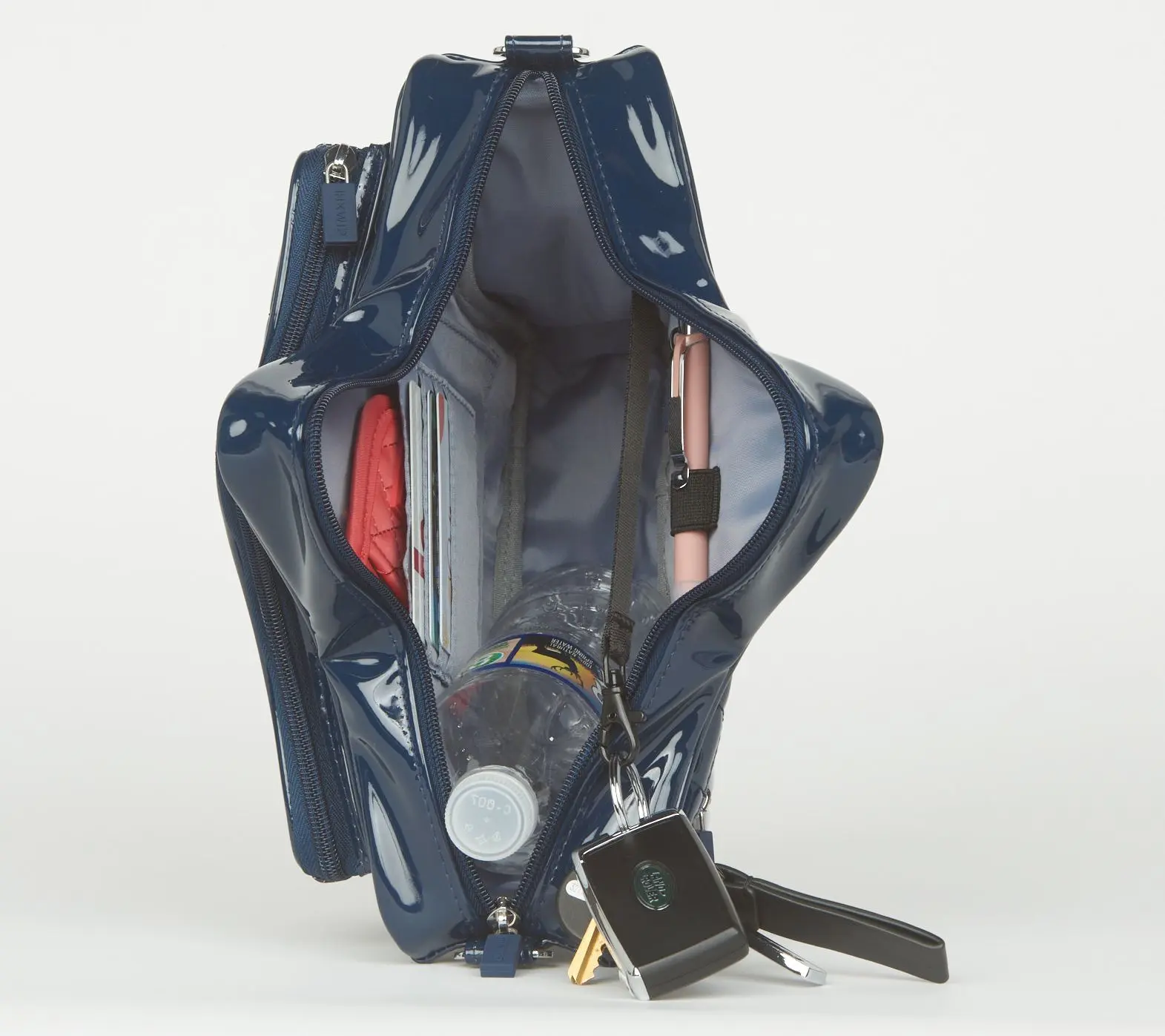 ·Light-colored lining, built-in card slots, key clip, slip pocket, zip pocket, pen loop, soft-lined phone/glasses pocket