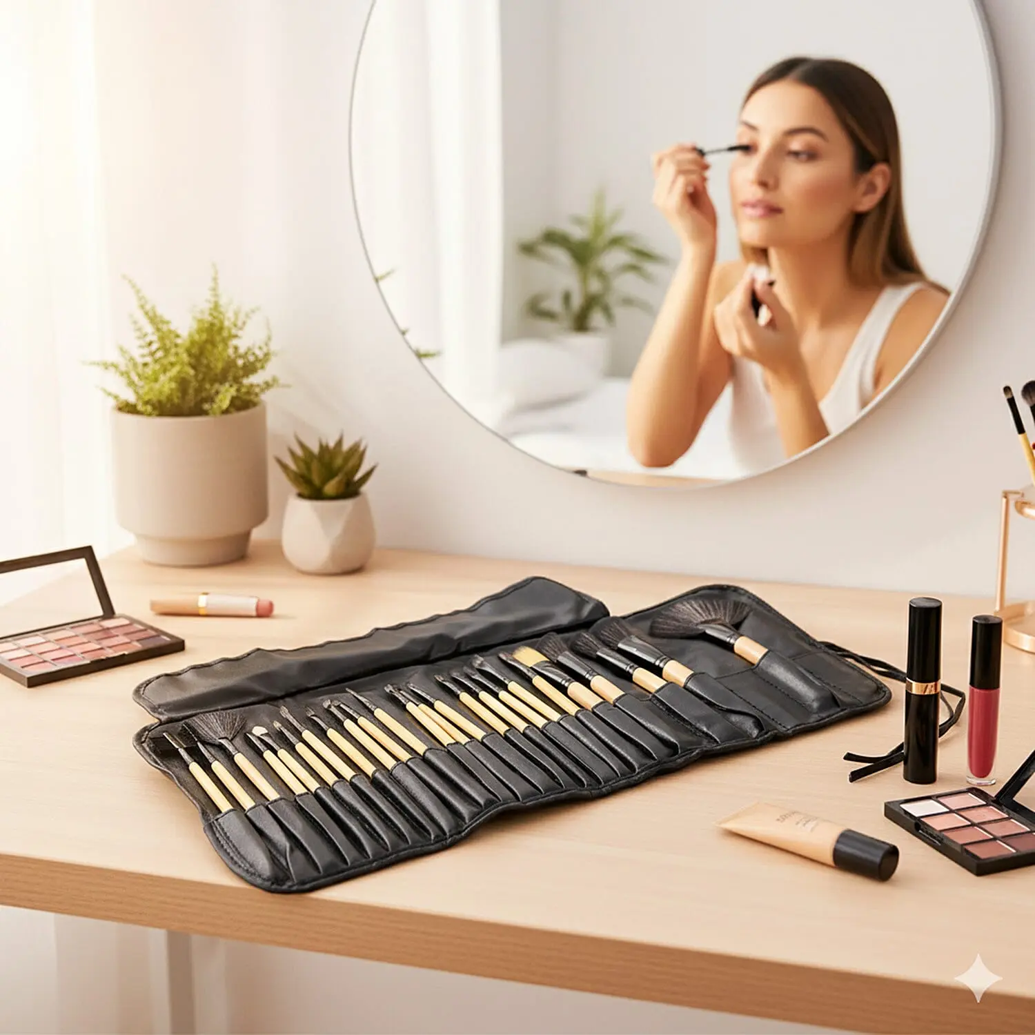 Craft flawless looks with the Makeup Brush Studio 25 piece set. This professional makeup brush set provides for both simple and advanced techniques. You'll enjoy precision and seamless blending with these high quality brushes for stunning results.Features | 24 specialized brushes included | Ultra soft bristles for gentle use | Comfortable wooden handle gripVersatility & Storage | Perfect for personal or professional use | Neatly organized in storage bagMaterial & | Made with premium wooden materials | , easy to bristles