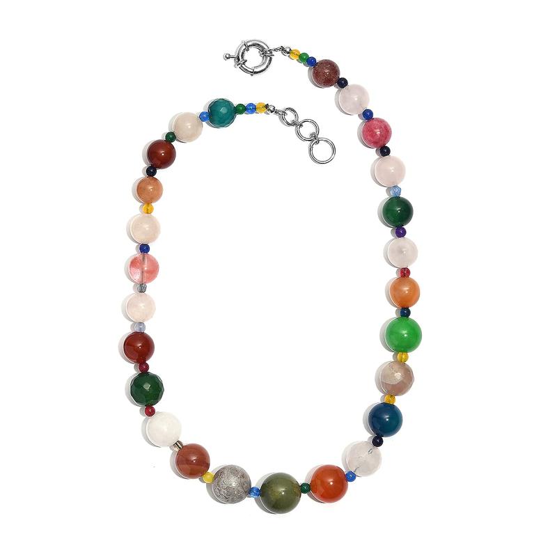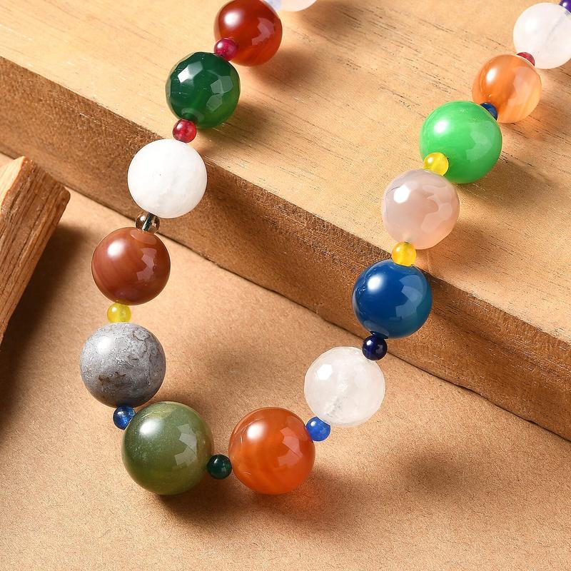Flaunt your elegance with this multi gemstone necklace in durable metal. The colorful beaded necklace blends vibrant tones to create refined luxury. You'll appreciate how it captures attention and elevates your look effortlessly.Details | Stand out with vibrant multi colored gemstone beads | Luxurious finish with durable metal | Secure fit using a reliable spring ring clasp | Effortless styling with versatile 18 inch length | Eye catching statement piece for special occasions | Comfortable wear with smooth beaded craftsmanship