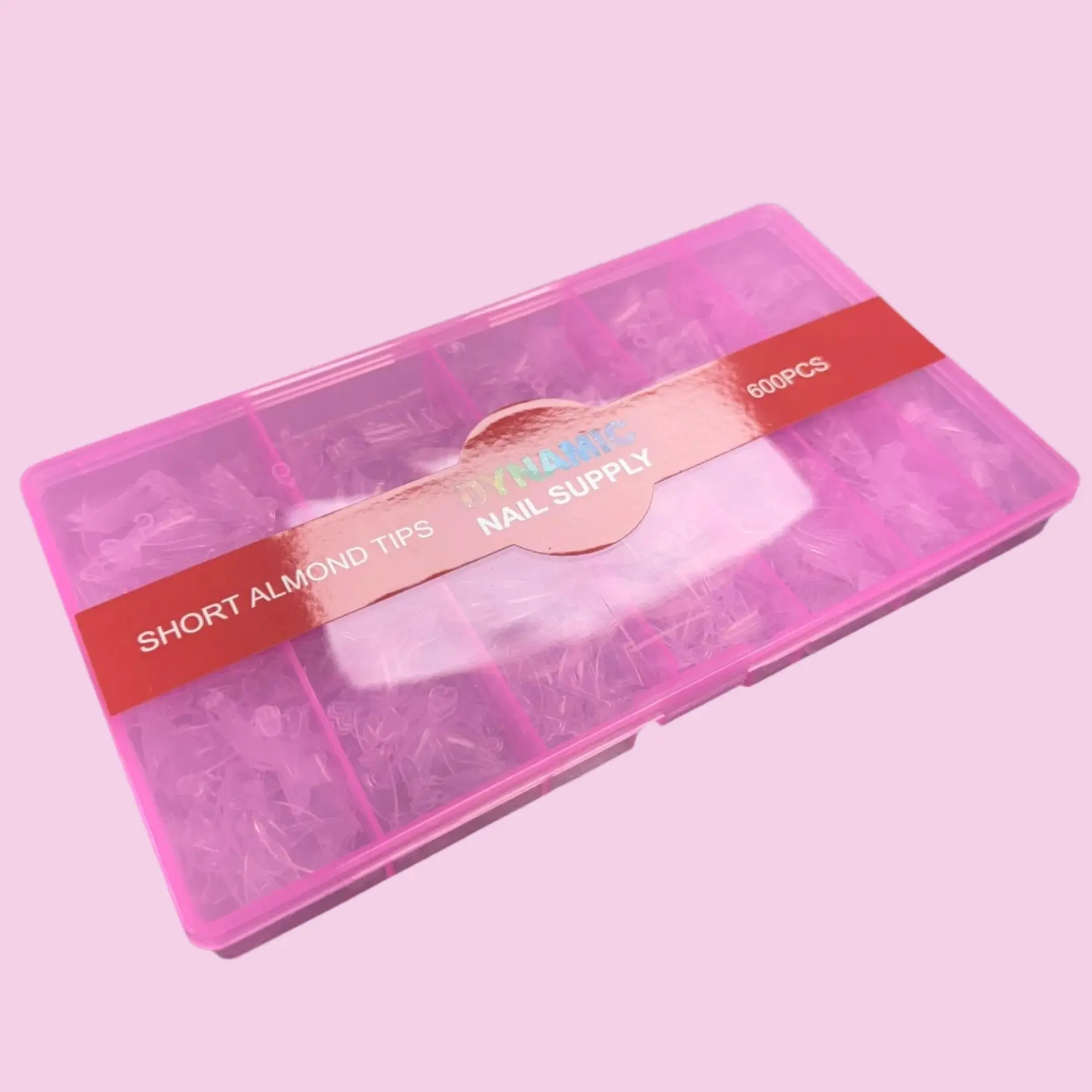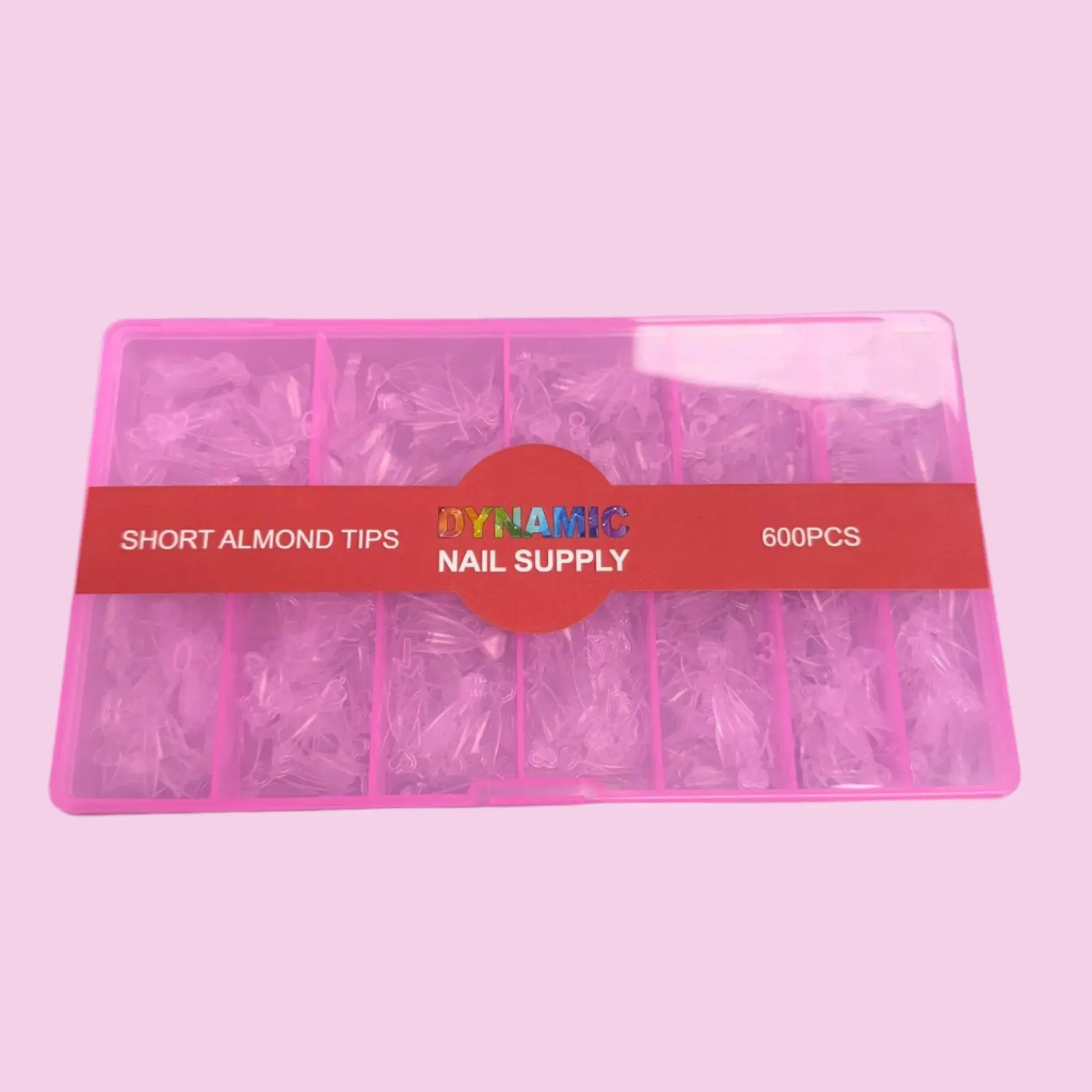 Short Almond Nail Tips - Half Cover - 600 pcs 12 sizes (Short Stiletto)