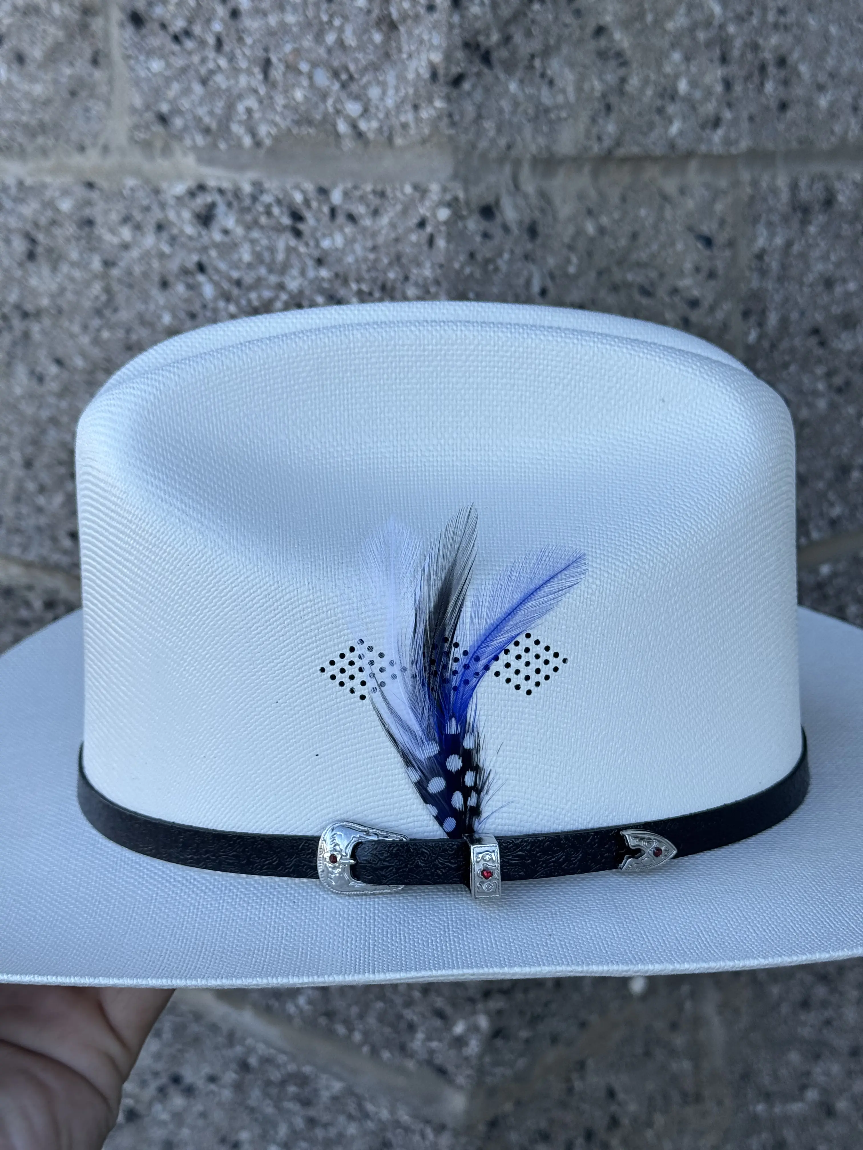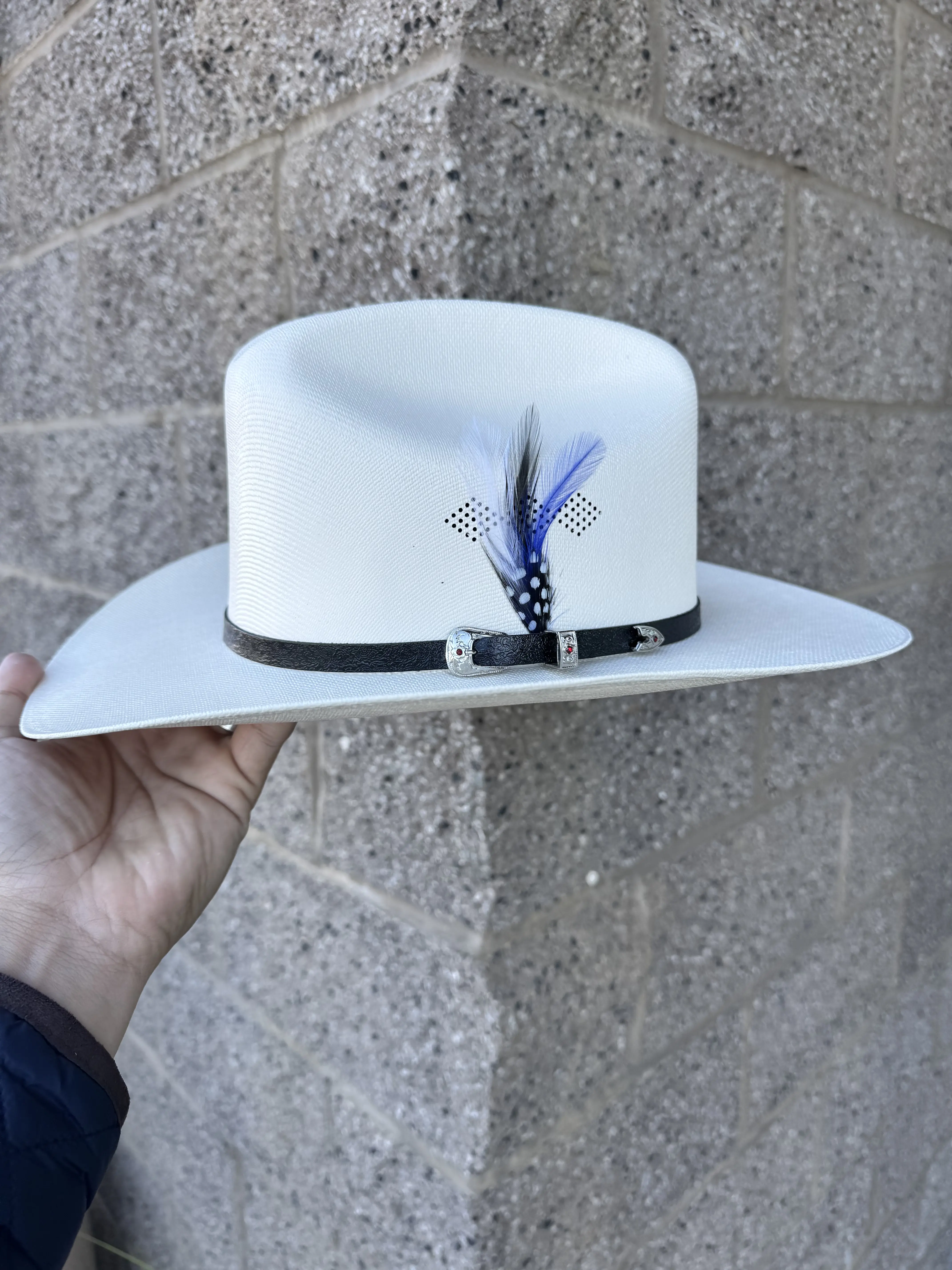 1,000X Short Crown, Brim 3" Morcon Hats Brand (Blue Diamond Feather)