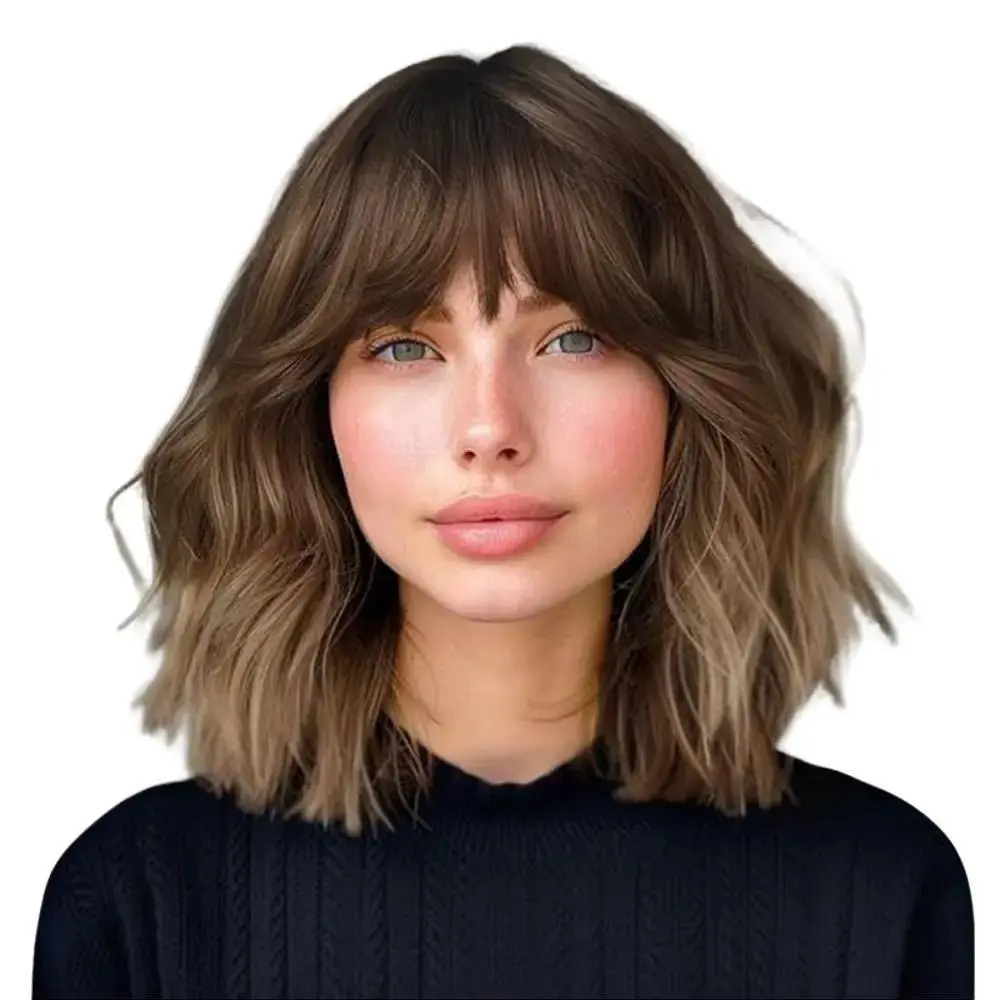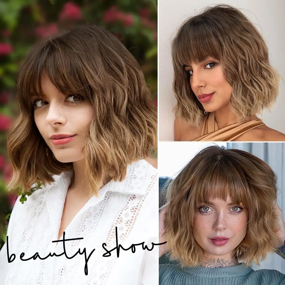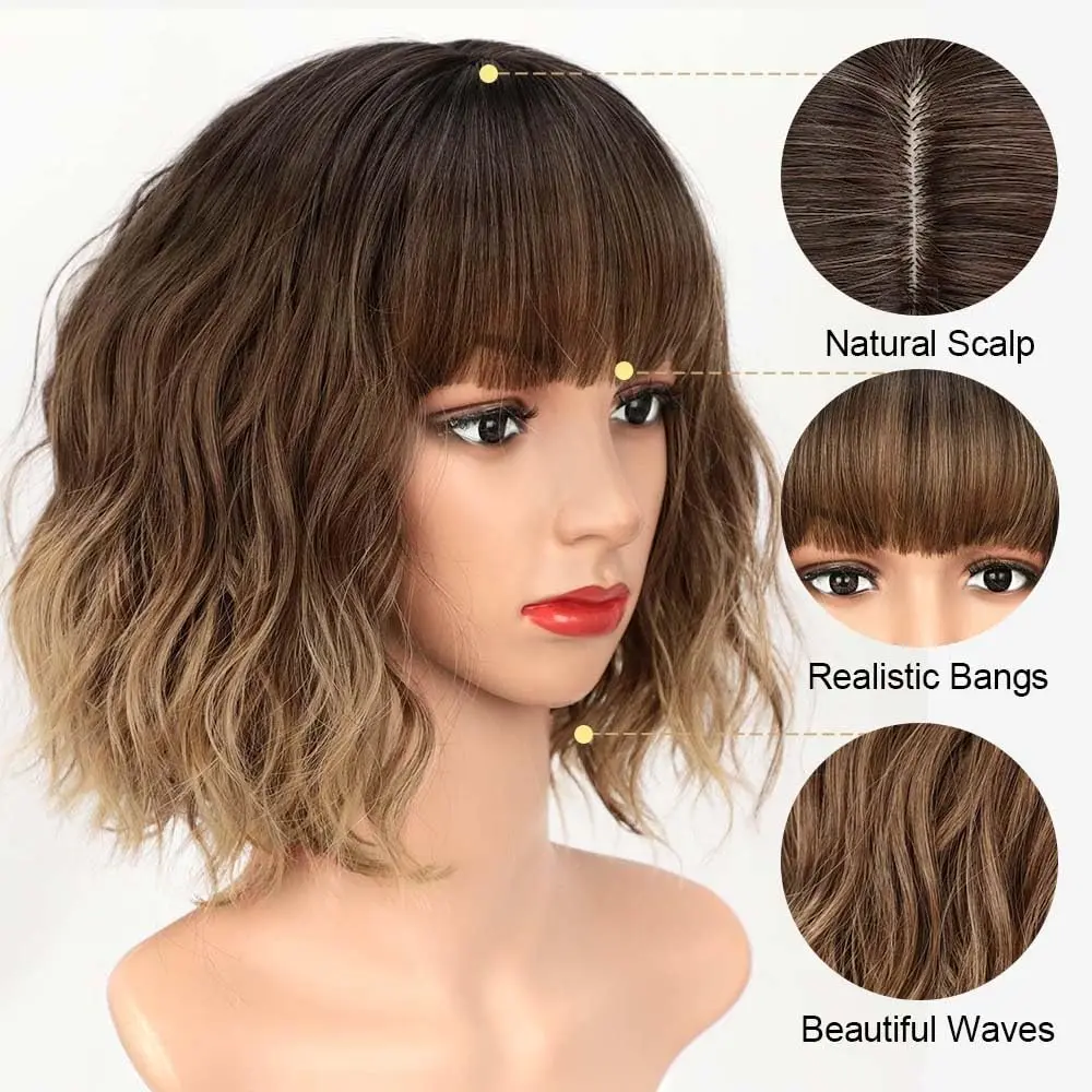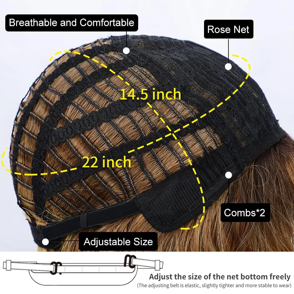 ·Adjustable Straps & Breathable Rose Net:This Bob wig bangs fit for most head sizes and shapes with elasticated breathable rose net and adjustable straps inside. You can loosen or tighten the wig to reach a most comfortable condition
