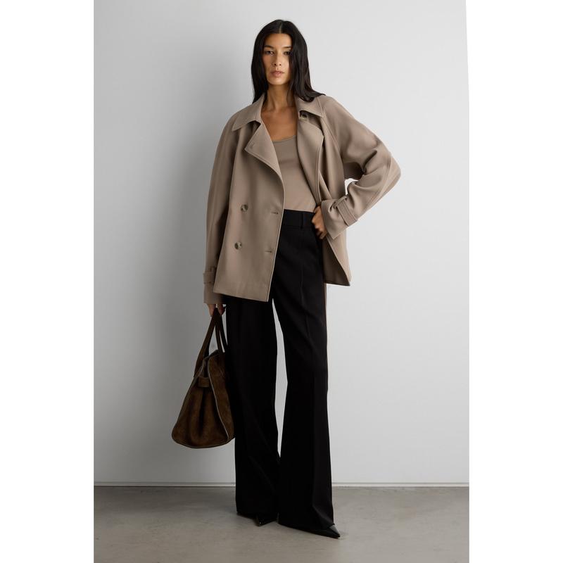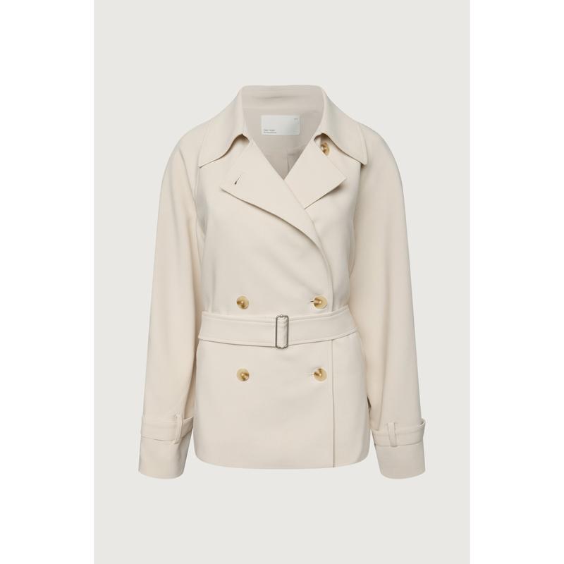 Inspired by our iconic, best-selling trench coat, this version is shorter and hits just right at the hips. It has the same luxe fabric and classic trench details. A new outerwear choice you can wear with all your looks this season. Pair yours with a mockneck knit and jeans. DETAILS Double-breasted front. Belt with buckle at waist and sleeves. Notched lapels. Back vent and slit. Side pockets. FIT & SIZING