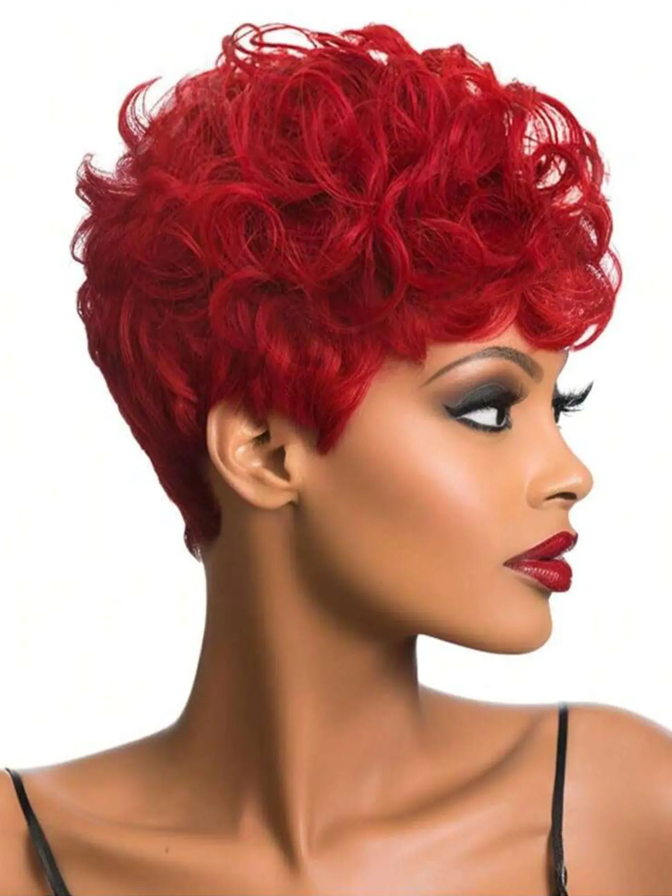 Short Pixie Wigs Short Black Curly Pixie Wigs Synthetic Hair Wigs Natural Wavy Black Burgundy grey Pixie Cut Wig Short Curly Layered Pixie Wig Stylist Friendly Wig