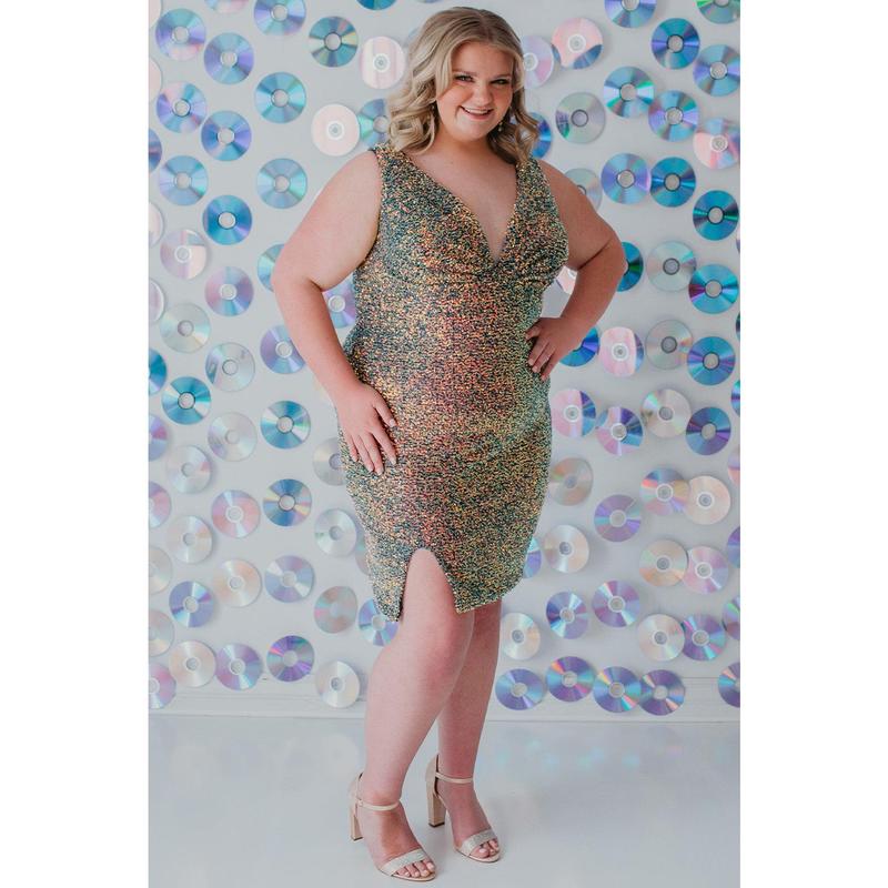 5. Short Plus Size Sequin V-Neck Cocktail Dress with Slit