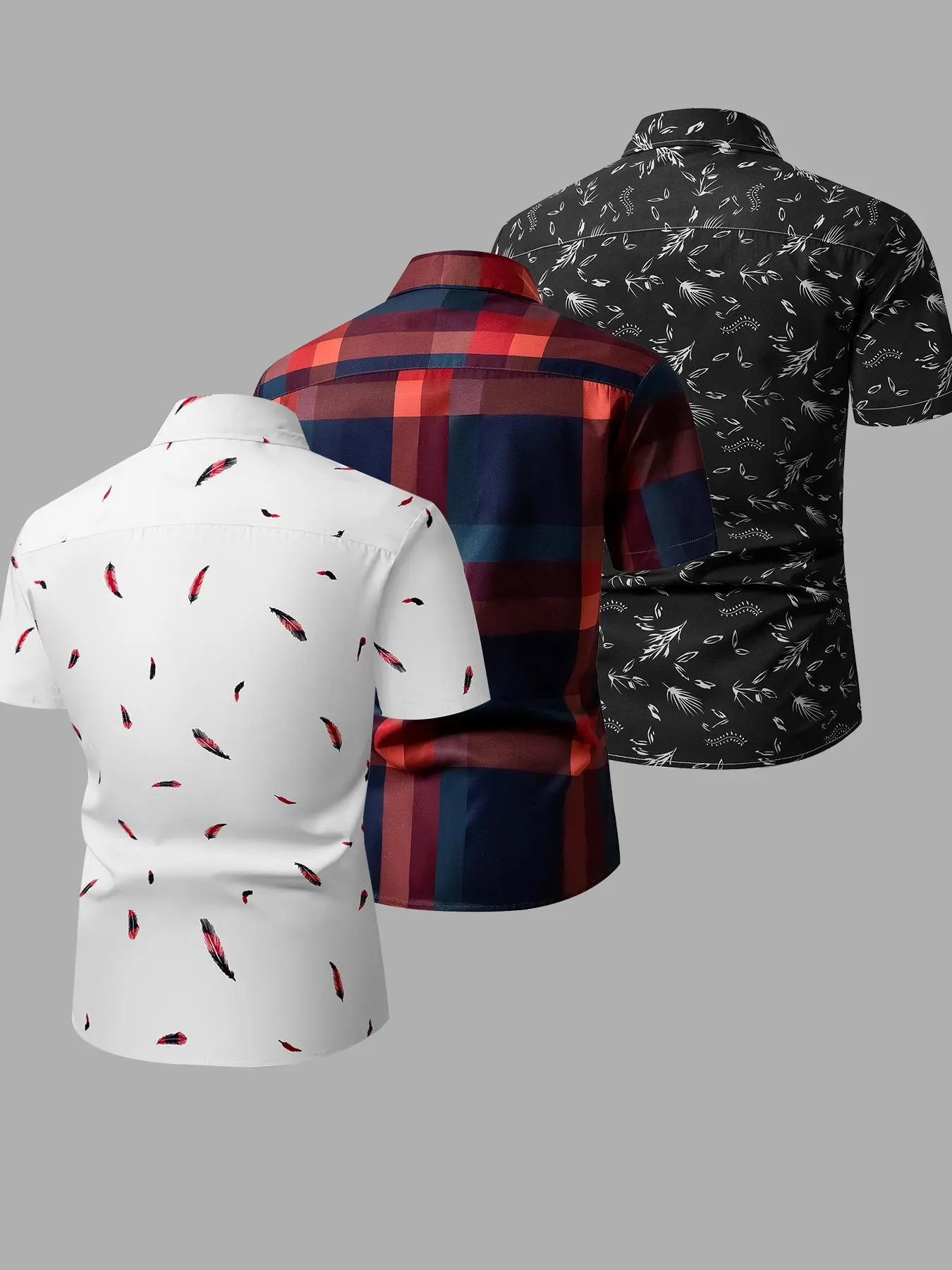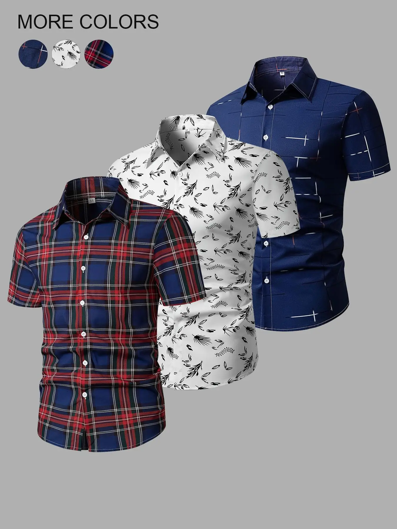 Paquete de tres camisas manga corta para hombre, #Random #Plaid #Print #Short #camisamangacorta