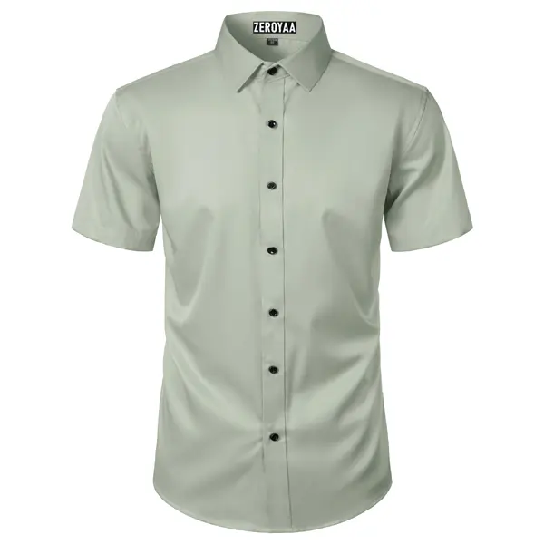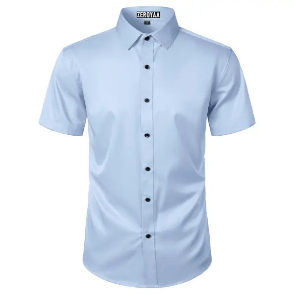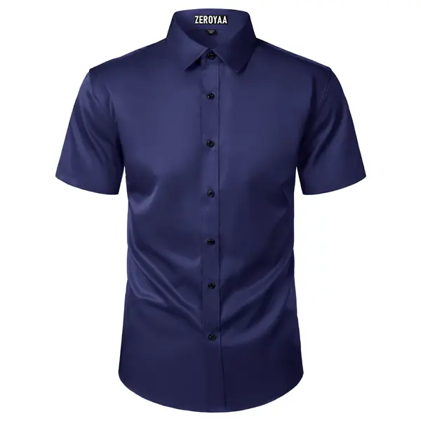 ·Design: This classic short sleeved shirt embodies timeless elegance with its bespoke design. It features a traditional spread collar and contrasting buttons for superior comfort and breathability. The modern fit ensures a clean, modern silhouette, while the clean lines and versatile design make it suitable for weddings, business meetings, and formal events.