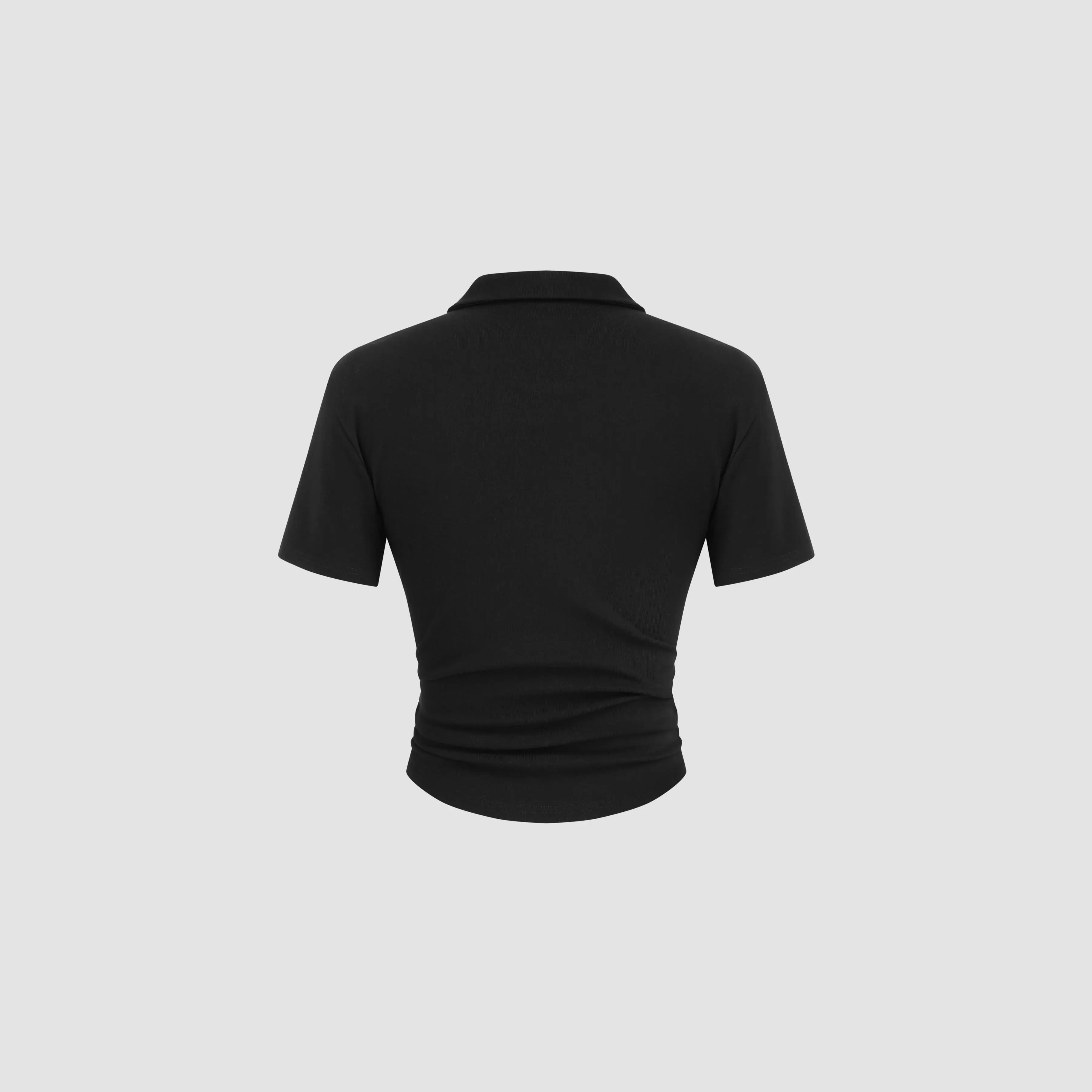 5. Cider [3 colors, size 2-10] Cotton-blend Collar Solid Ruched Button Short Sleeve Top